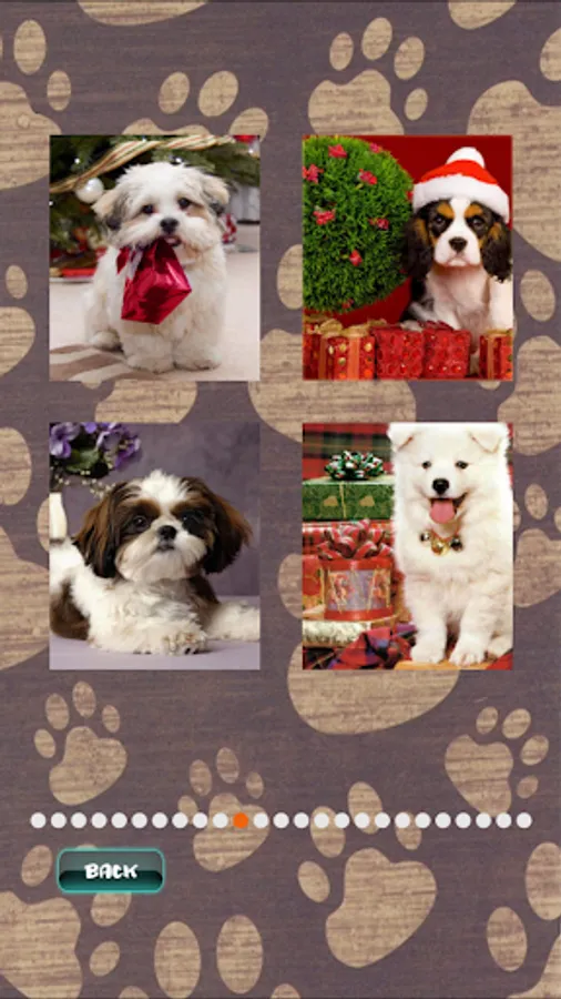 Enjoy high quality images. The game contains 100 levels of different type 3x3, 4x4, 5x5 and 6x6 with cute puppies pictures backgrounds vary from summer vacation to Christmas holidays. Drag the pieces to the right place to create the image. Use "Peek" button to preview the original image. Completed levels will be unlocked and you can save images to your phone photo gallery. If you can not complete any level just press "Skip" level button and try later.