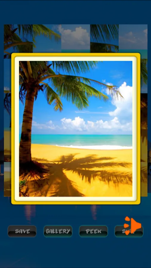 Enjoy of high quality images. The game contains 60 levels with beautiful tropical pictures. Drag the pieces to the right place to create the image. Use "Peek" button to preview the original image. Completed levels will be unlocked and you can save images to SD-card. If you can not complete any level you can simple skip it and try to complete it later. Just press "Skip" level button to skip current level.