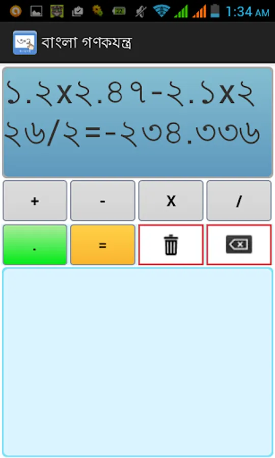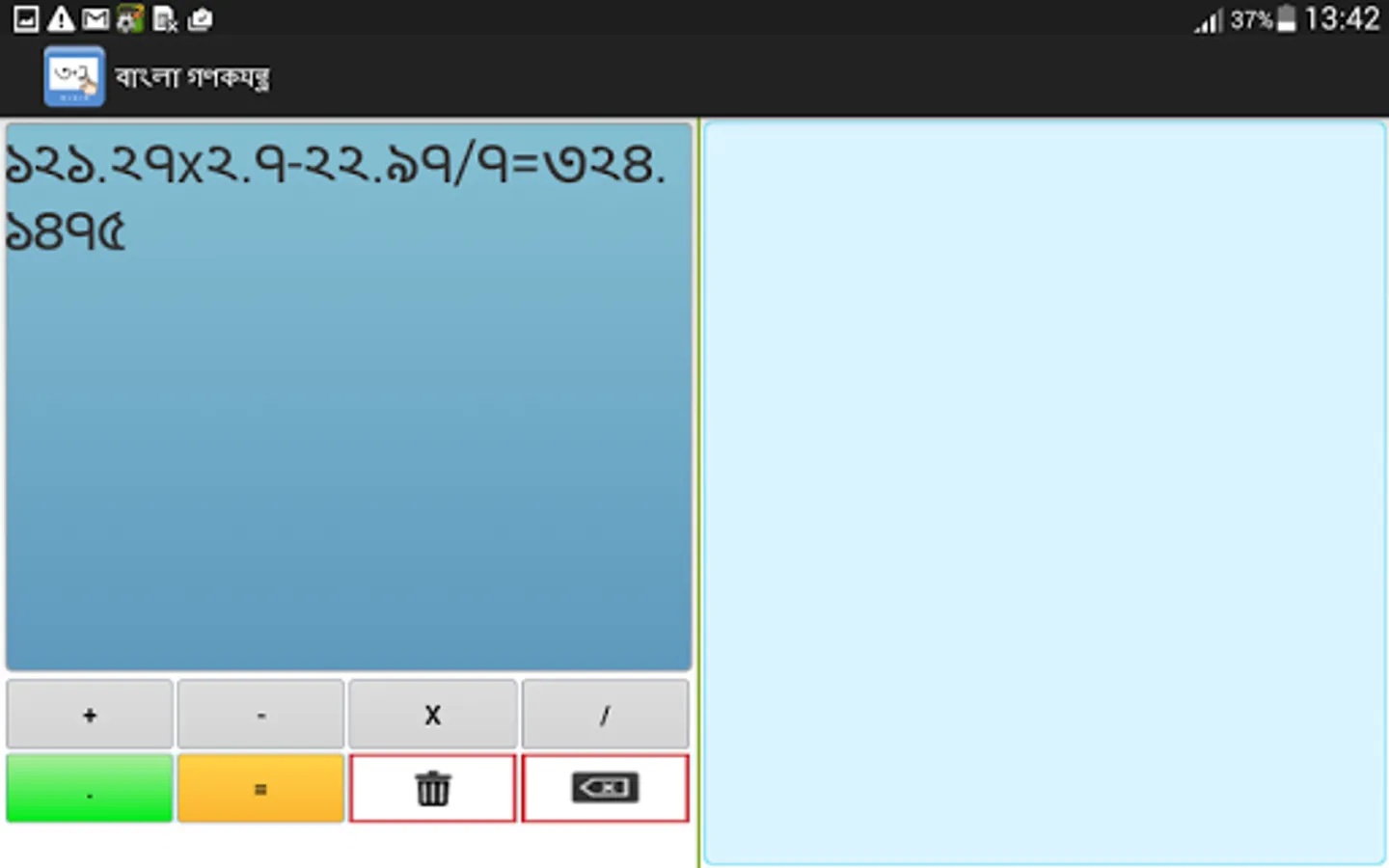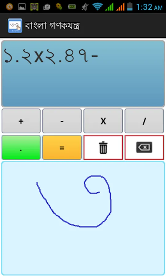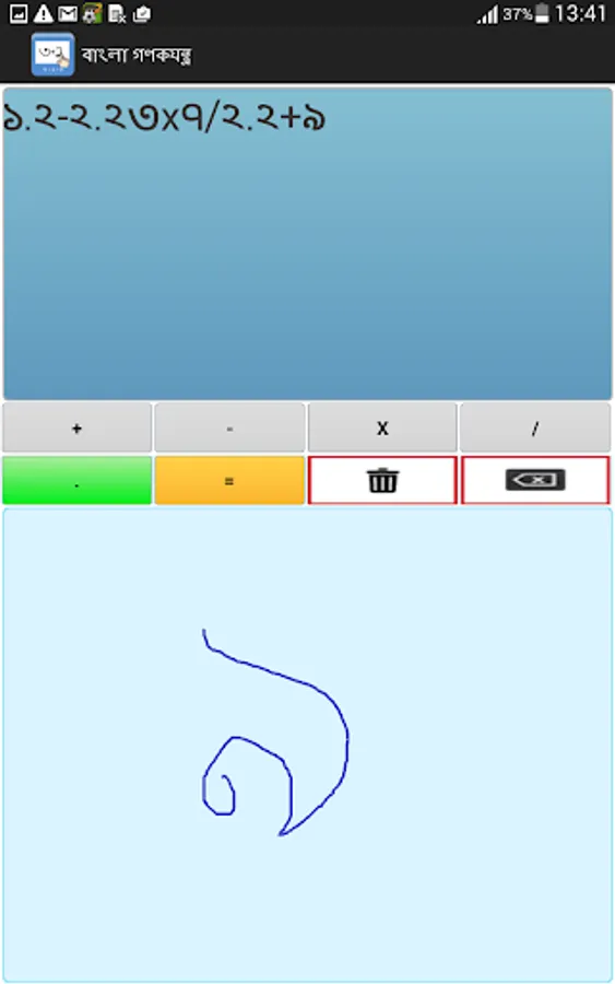 Bangla Handwritten Calculator(বাংলা গণকযন্ত্র) is basically a calculator application that can perform basic mathematical operations such as summation, subtraction, multiplication and division naturally using your handwriting pattern. Draw numbers on your device screen and do some quick calculations through this app.