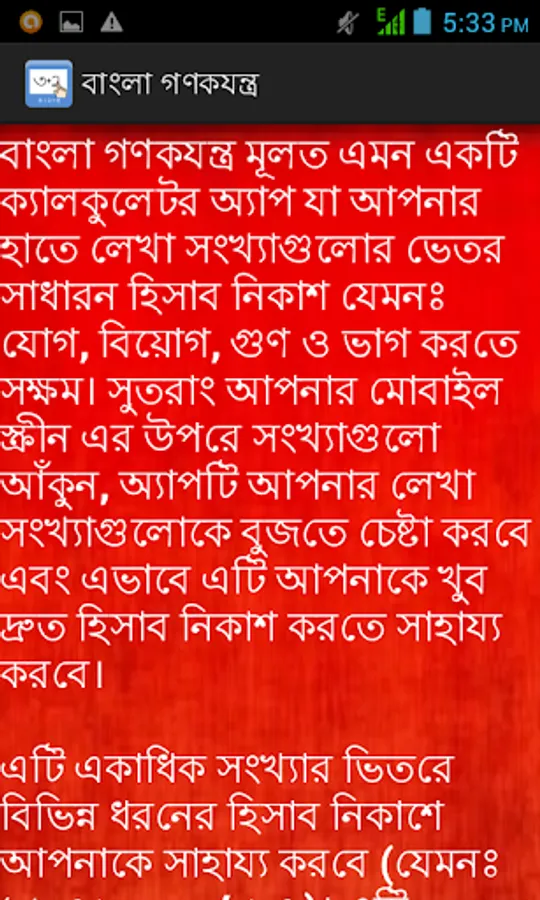 *** If you find, unfortunately Bangla characters aren't properly showing in the app then please install a Bengali font for your device before using this app. ***