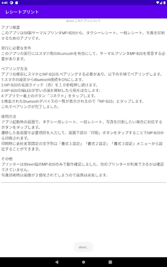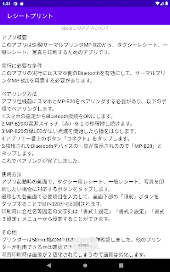 You can print receipts or photos from the app by pairing with the SII thermal printer MP-B20.