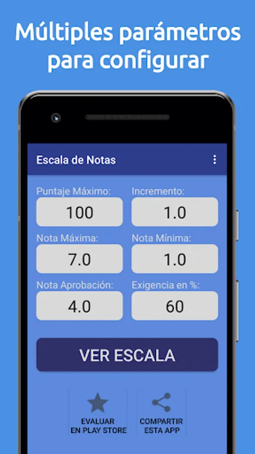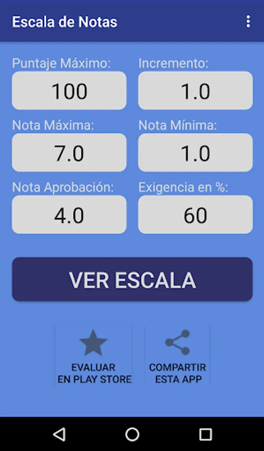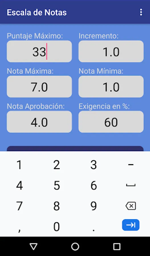 Generates a scale of grades, calculating the grades based on a score entered and level of demand (%).