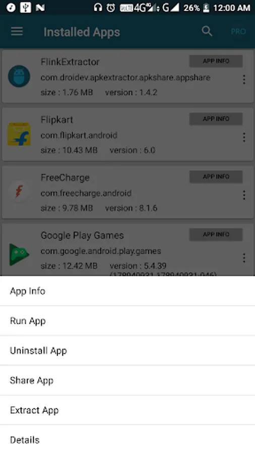 ✔One touch action (Extract app / Share app / Installed app / Uninstalled app / App info / App Details).