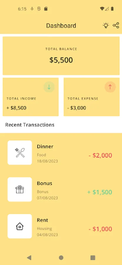 ⇨ Transaction Title: The title gives you an idea about the expense used by that specific time.