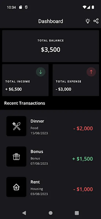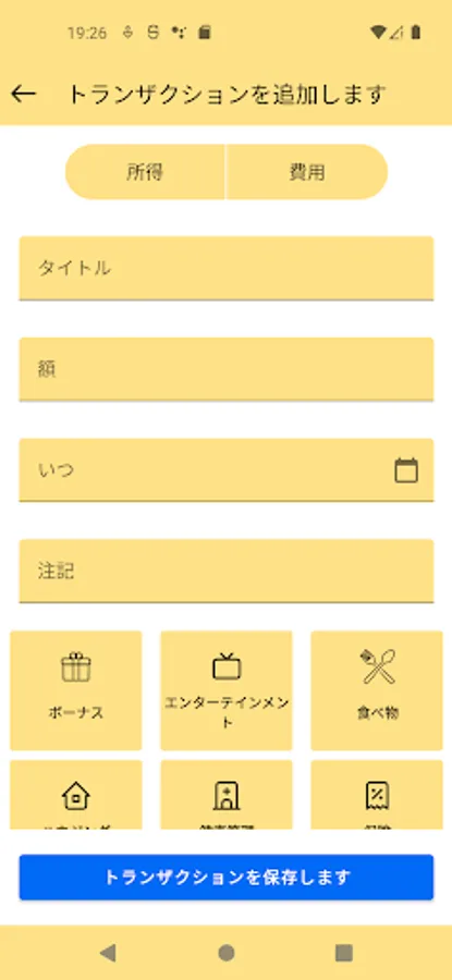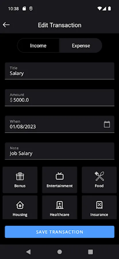 ⇨ Transaction Types: Creating budgets is an essential part of keeping track of your expenses. You can create monthly expenses across all categories by selecting Income or Expense type.