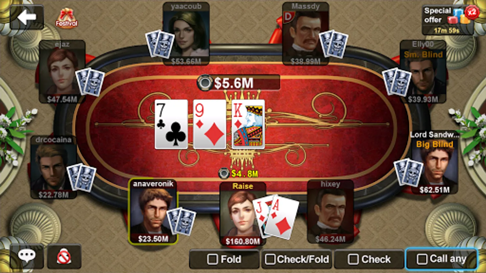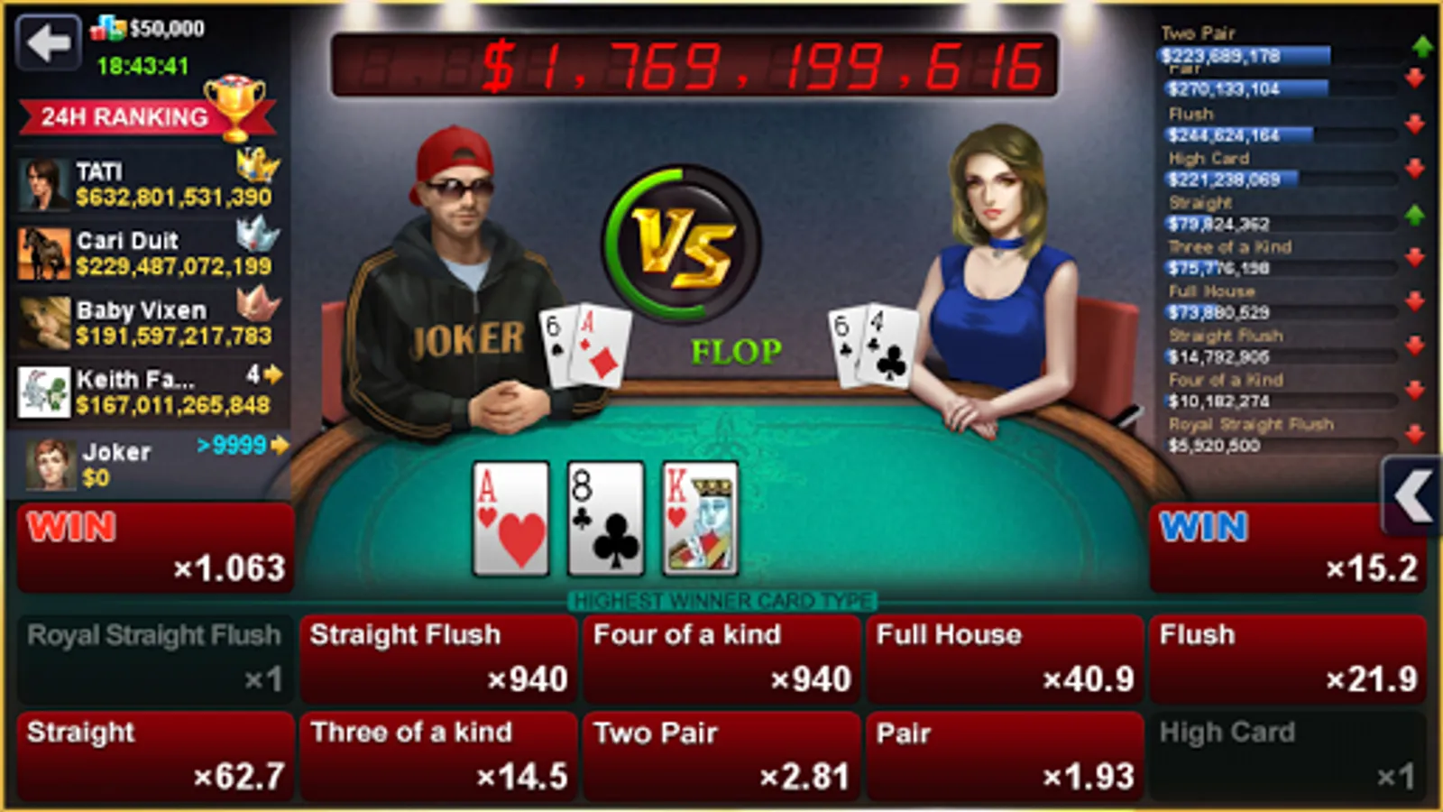 "DH Texas Poker" is intended for an adult audience for entertainment purposes only. Success at social casino gambling does not reward real money prizes, nor does it guarantee success at real money gambling.