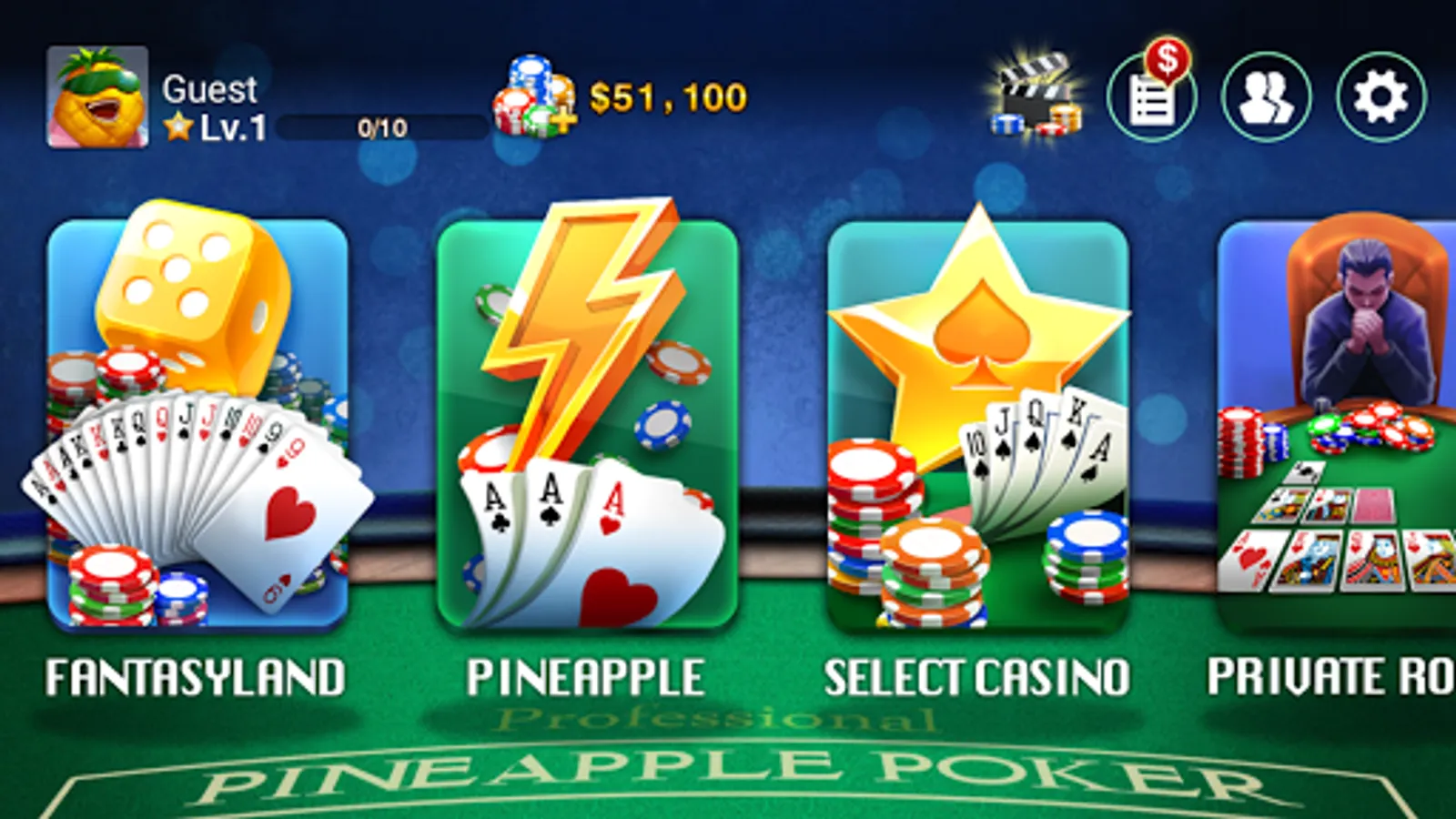 Play poker, have fun and make friends in DH Pineapple Poker!