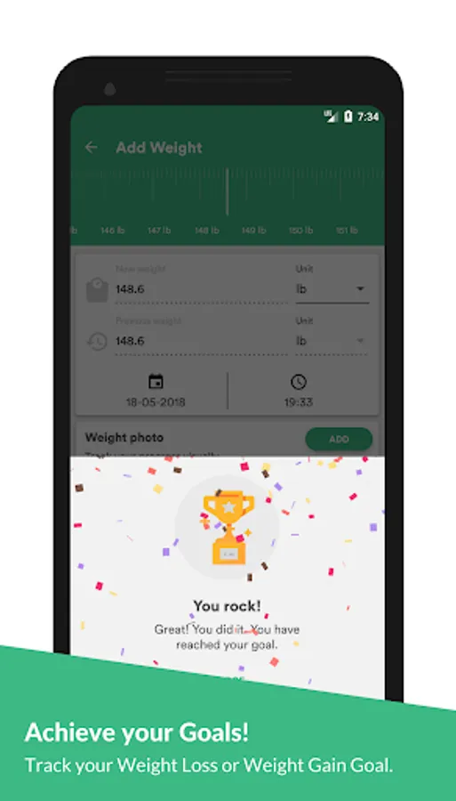 ✓ Set your weight goals - Both Weight Loss and Weight Gain.