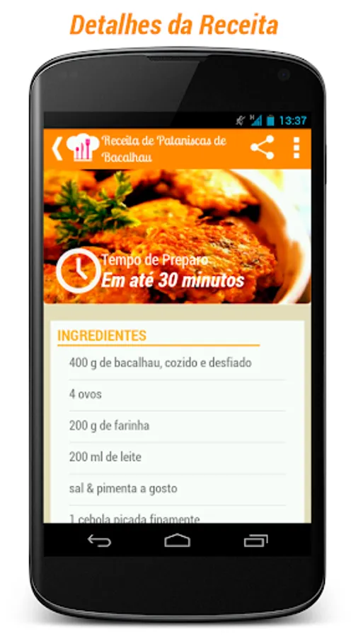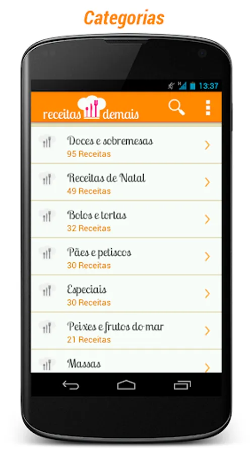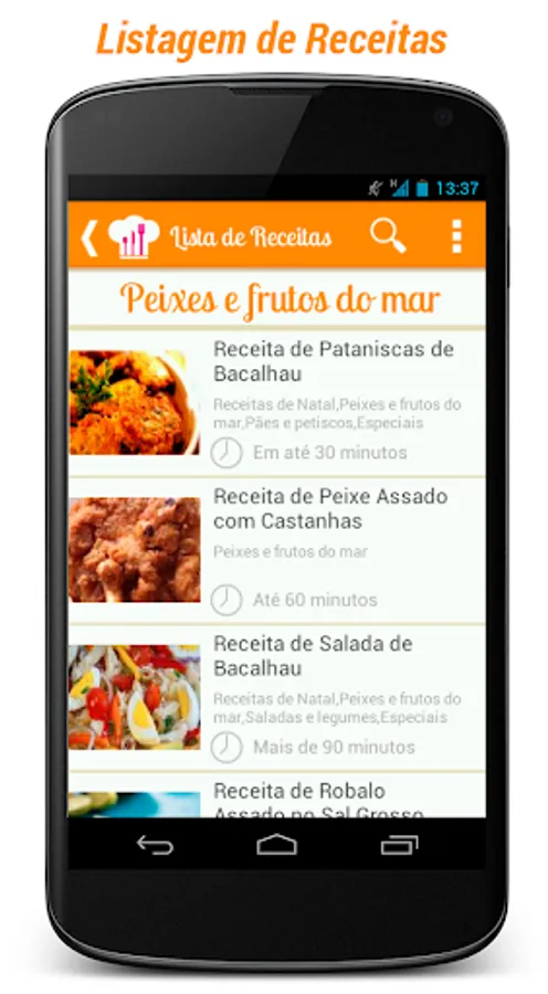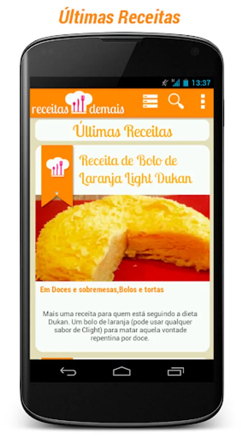 Type a word that the application will list all registered recipes that contain the search term is in the title, in the preparation mode or the ingredients. Example: Pudding