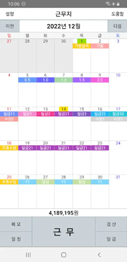 Schedule - Check the estimated salary by registering your work schedule, you can set the alarm registration.
