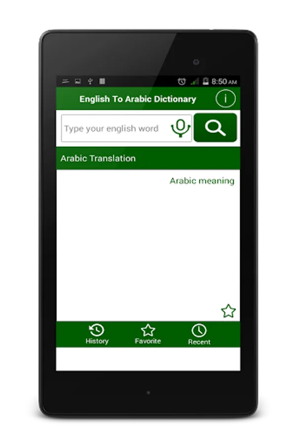 Dictionary between English and Arabic. Now anything in the English language can be translated into the native Arabic language for better understanding and learning. Or the users having keen interest in learning multiple languages can use the app for learning the English or Arabic language.