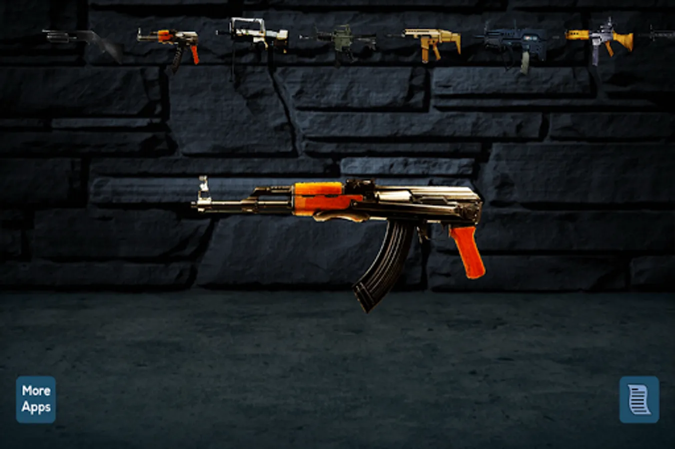 Gun Sounds application comprises an awesome and good quality collection of all popular guns including Shotgun, AK-47, Famas, M4A1, Scar H, Tar 21, Fal, M16a4, ACR, F2000, Min Uzi, P90, Vector, Ump5k, Mp5k, L86 Lws, RPD, MG4, Aug Hbar, M240, Intervention, Barrett 50 Cal, Wa 2000, M14/M21, AA 12, sniper along with their sounds. They are currently the most popular gun in the world. Real Guns Sounds is one of the best in millions of Guns sounds applications on market, It includes clear and original sounds from various types of popular firearms. A very simple and amusing app for you or someone else to enjoy.