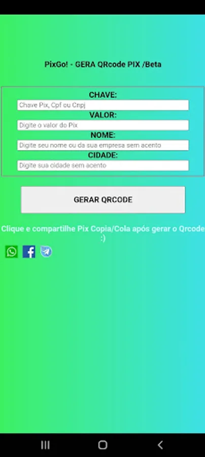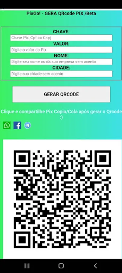 If you prefer, now when you click on generate QRCODE, you can share the Pix key copy/paste generated in Whatsapp and others.