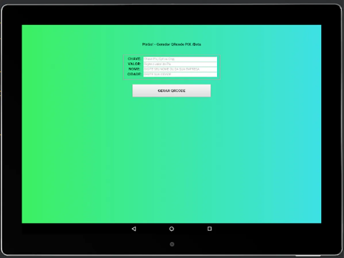 Our app has the power to generate a QRCODE with the data you provide to make payments using the PIX, so you can use your cell phone or tablet to leave it at the store, counter or cashier and receive your payments.