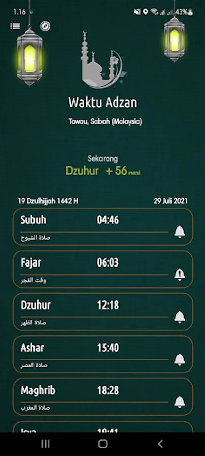 Application to find out the prayer time must be five times, by using this application the user is not bothered anymore to find out prayer times in his area.