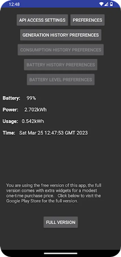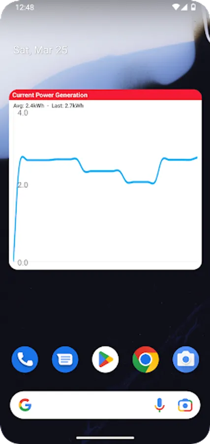 Display solar generation history graph on your phone or tablet's desktop. Updates periodically in the background.