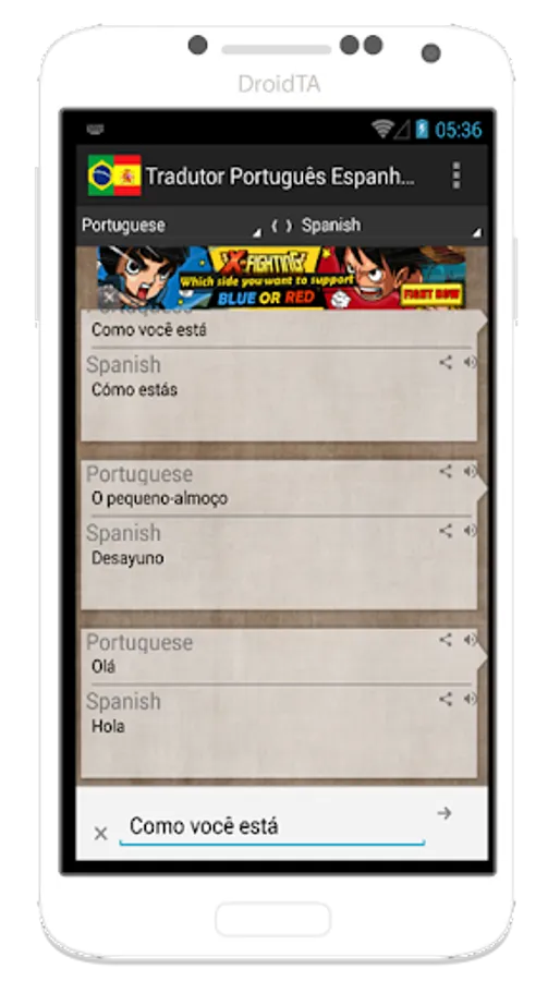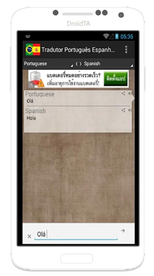 This free app can translate words and texts from Portuguese to Spanish and Spanish to Portuguese.