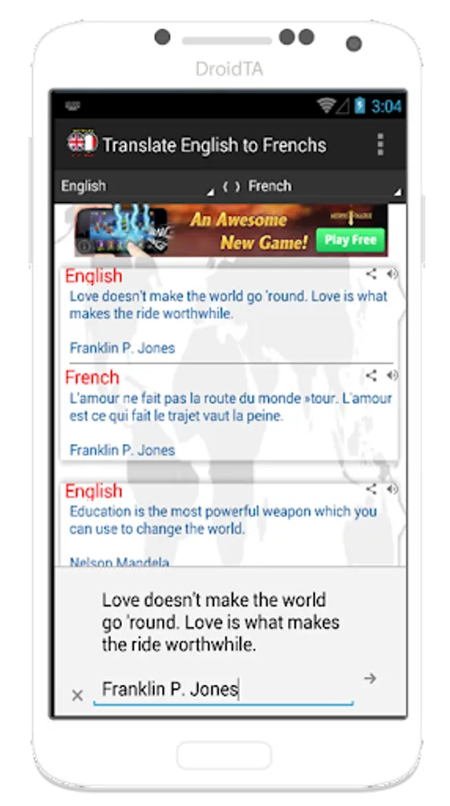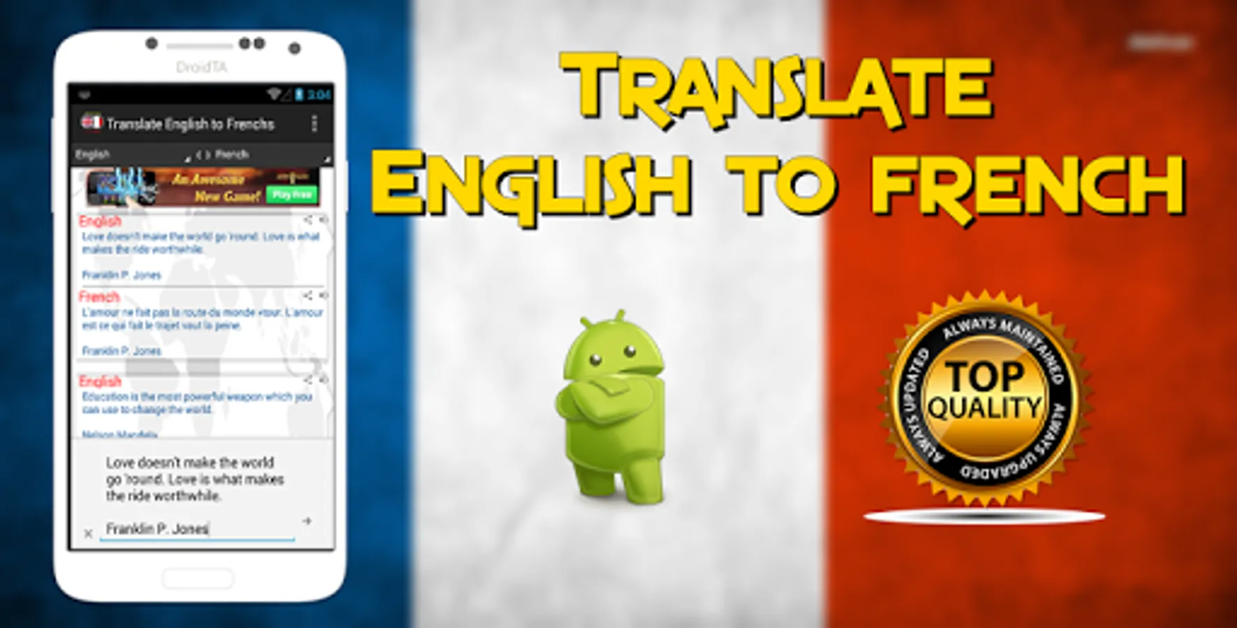 Translate english to french is easy now. This application can help you to translate between english and french very quick and easy. You can use this application for your study, travel or other propose.