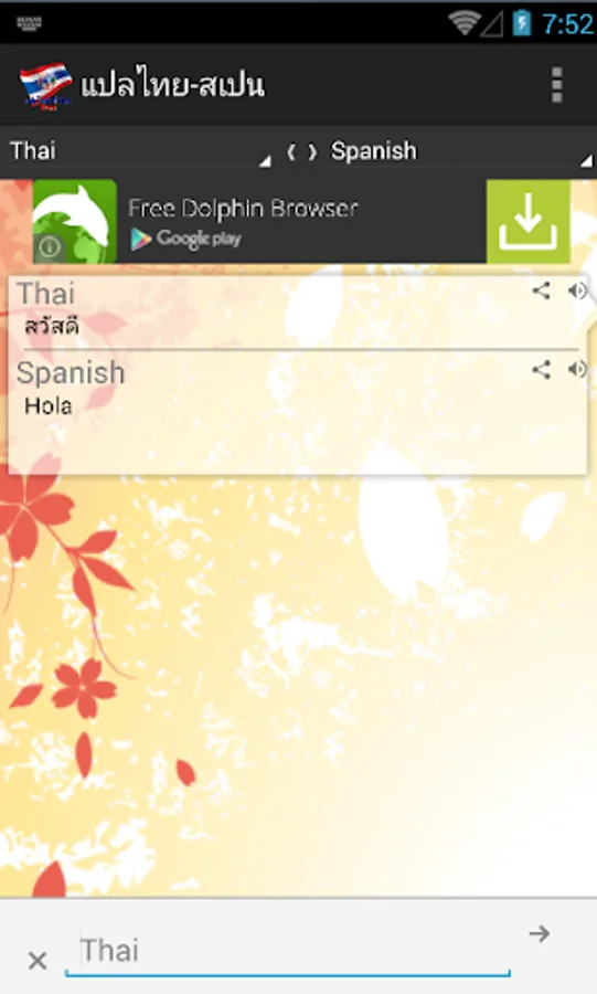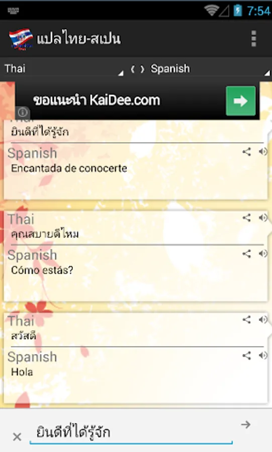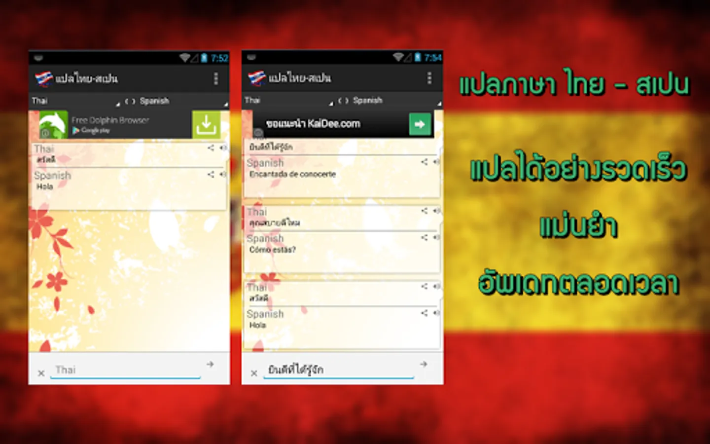 The most popular translation system Accurate Allows you to translate. From Thailand to Spanish or Spanish to Thailand.