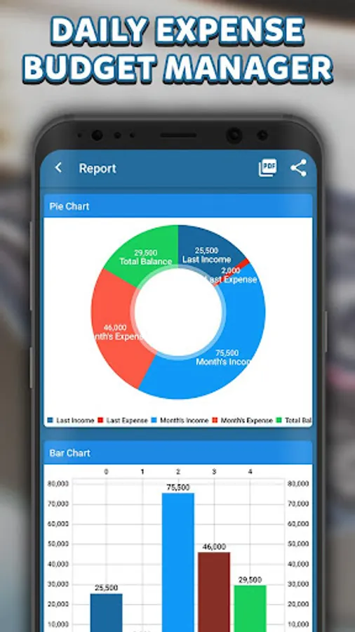 - Find your spending tendencies and stats graphically and find out what type of spending needs to be controlled.