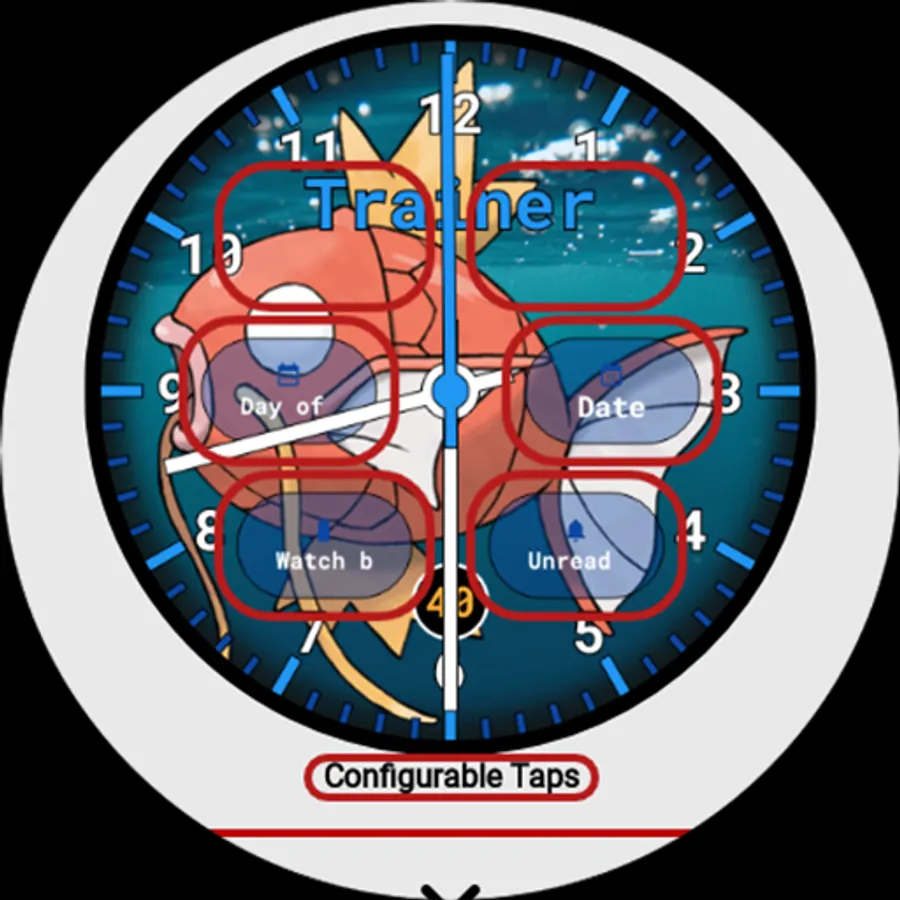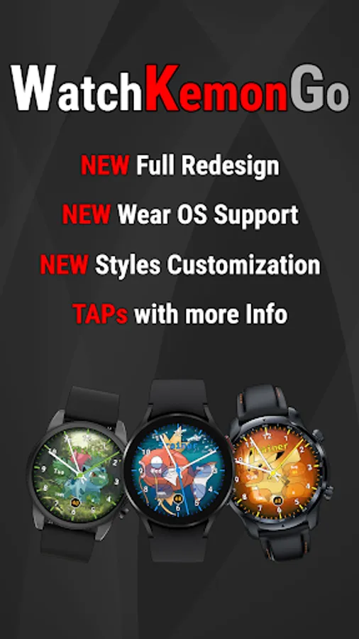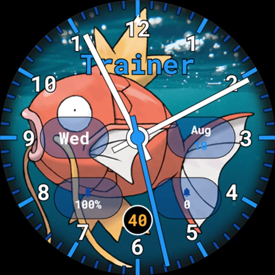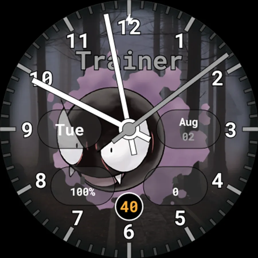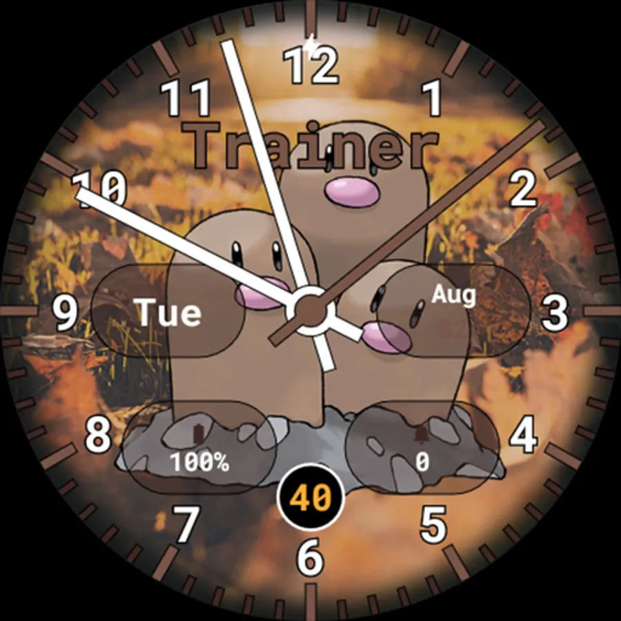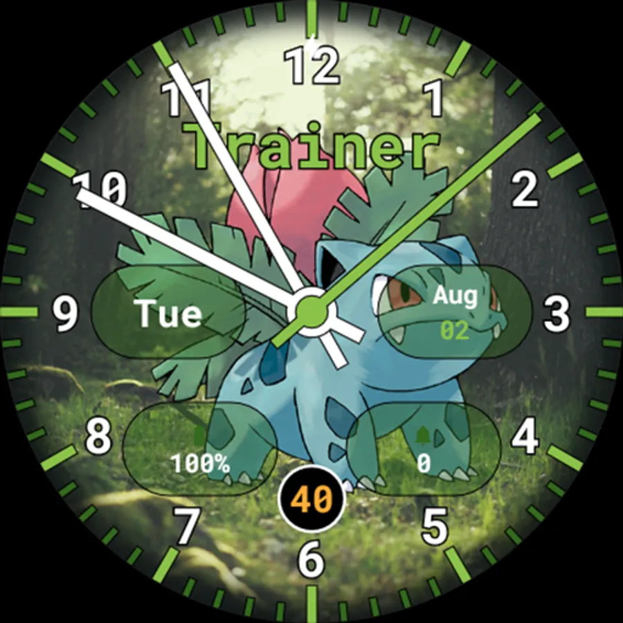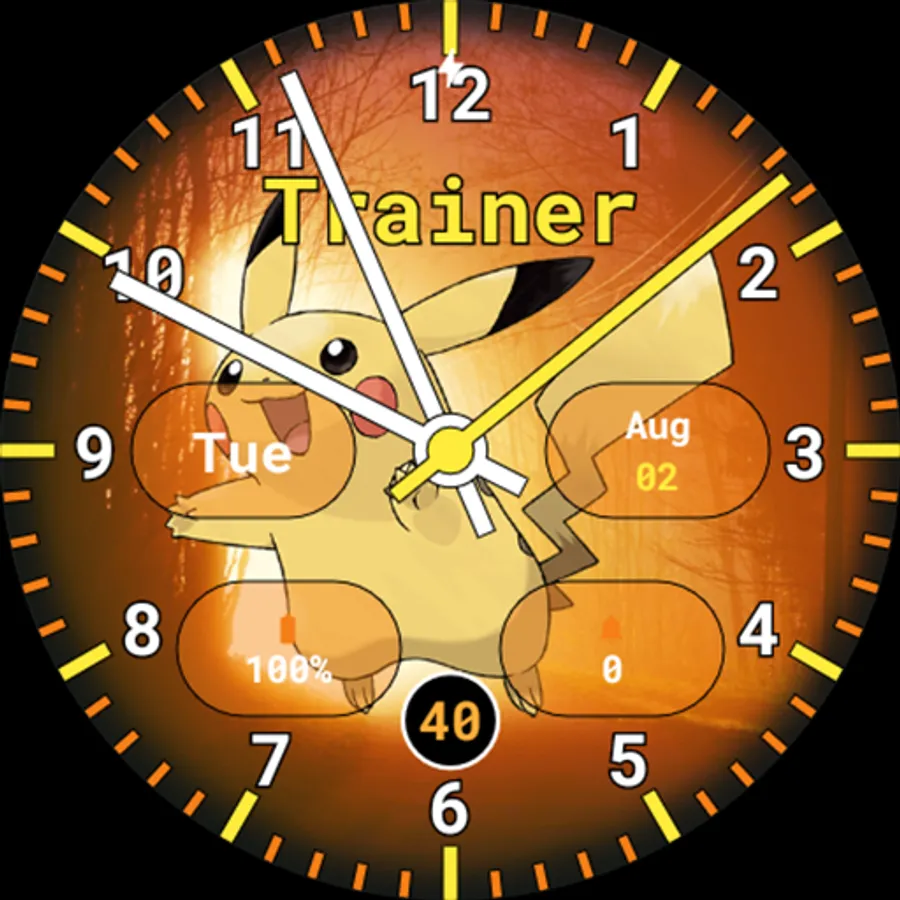 Very customizable, with different themes of Creatures, Teams... with your trainer name and level! It also has a visualization for the relevant info on the clock.