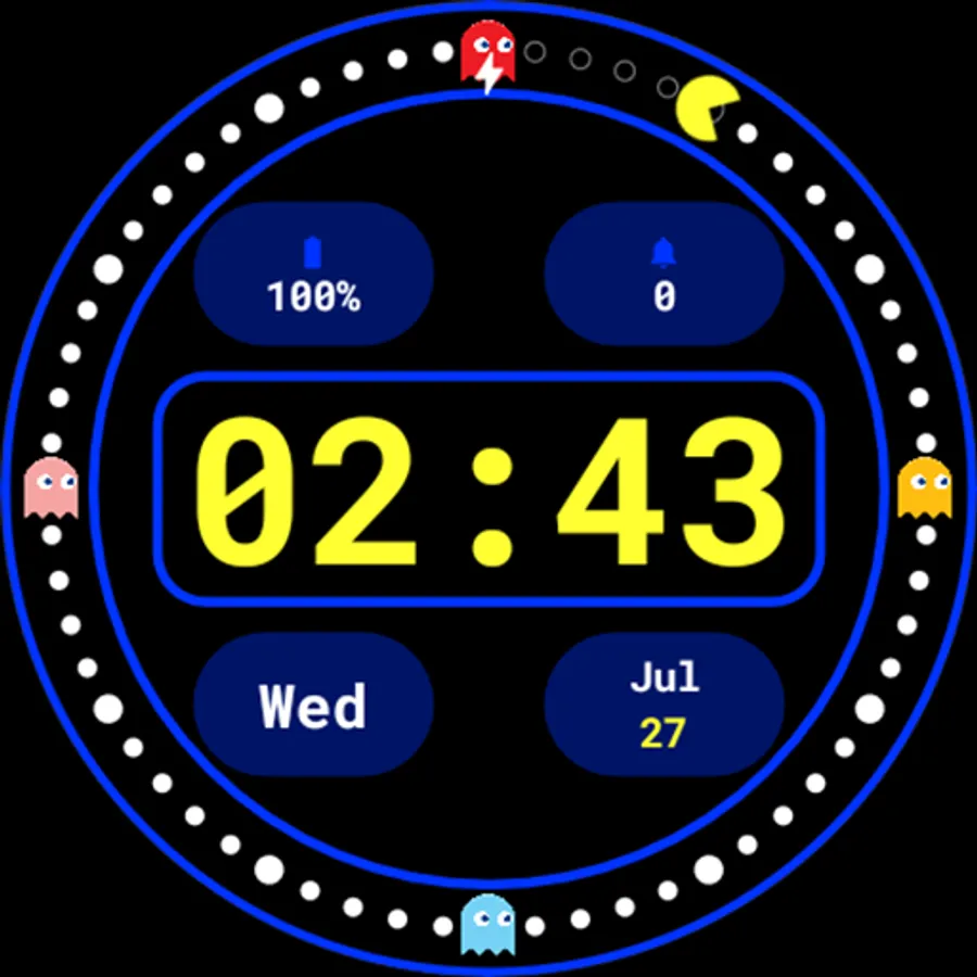Very customizable, with different themes of this arcade game... It also has a visualization for the relevant info on the clock.