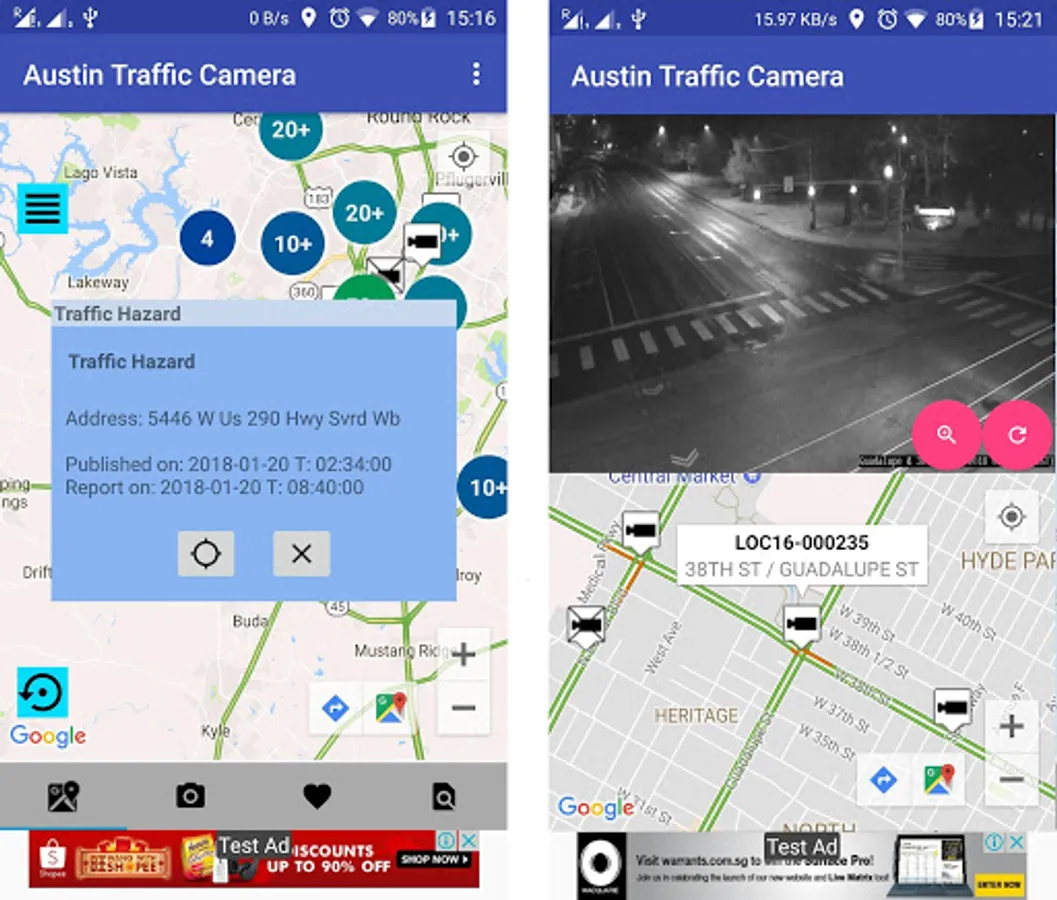 It shows all live traffic cameras in the City of Austin, Texas with a user-friendly interface.