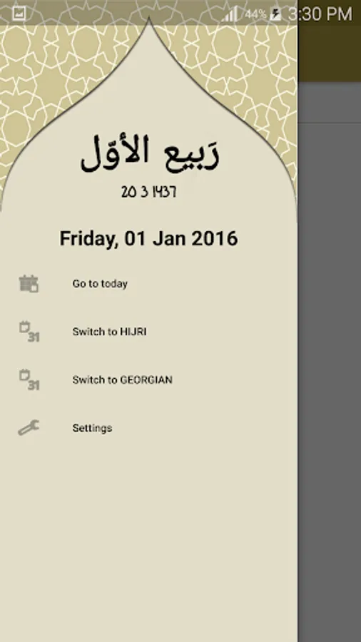 Side menu display Latest date of Hijri and Georgian Calendar.