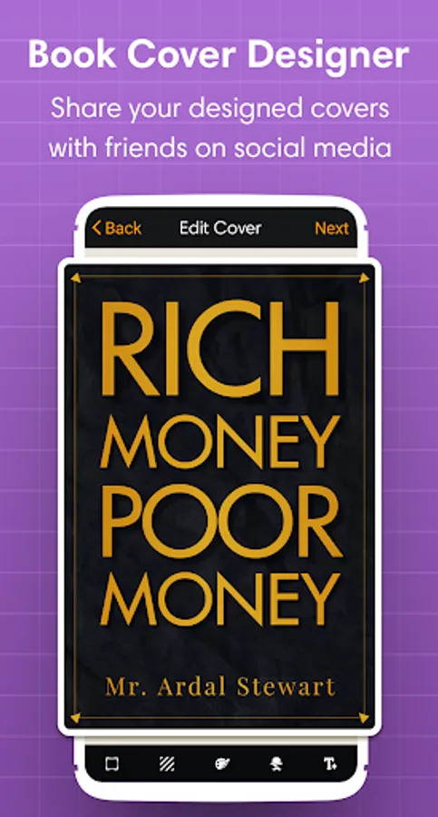 You get the option to add a background for your book cover, you can select the background from the phone storage or the app collection.