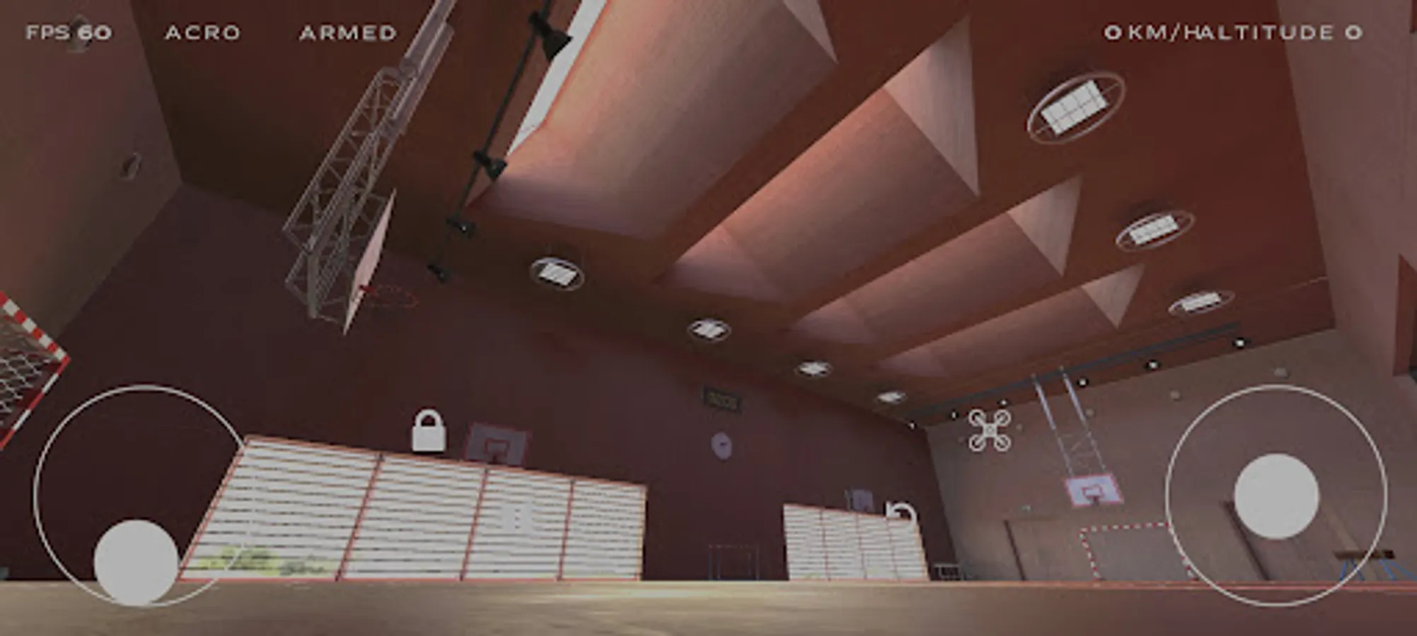 Experience the thrill of flying Raven in a realistic school gym environment! With Argos' FPV simulator, take flight indoors and perfect your piloting skills in a safe and exciting setting, providing a unique drone-flying experience like never before.