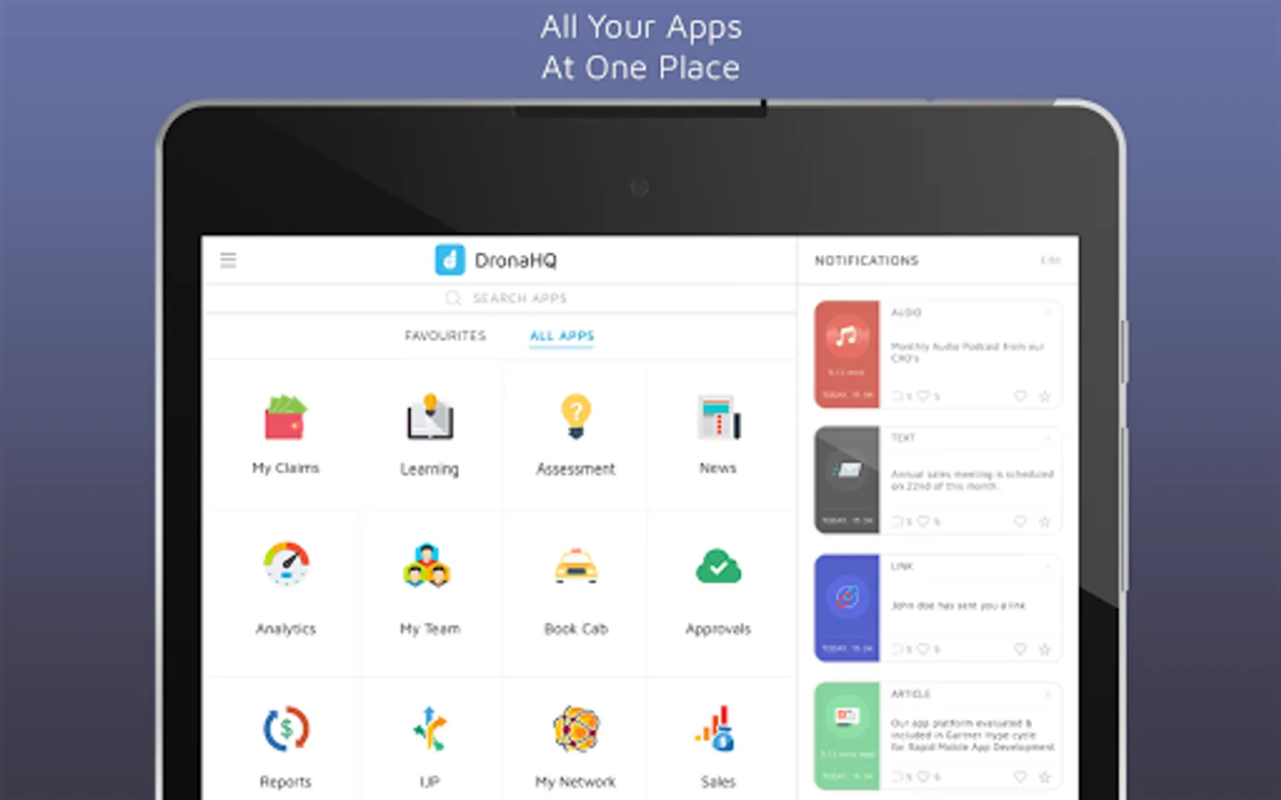 DronaHQ helps you create your own app from the web platform for your employees, distributors, share holders, franchisees, customers and more in less than 5 minutes.