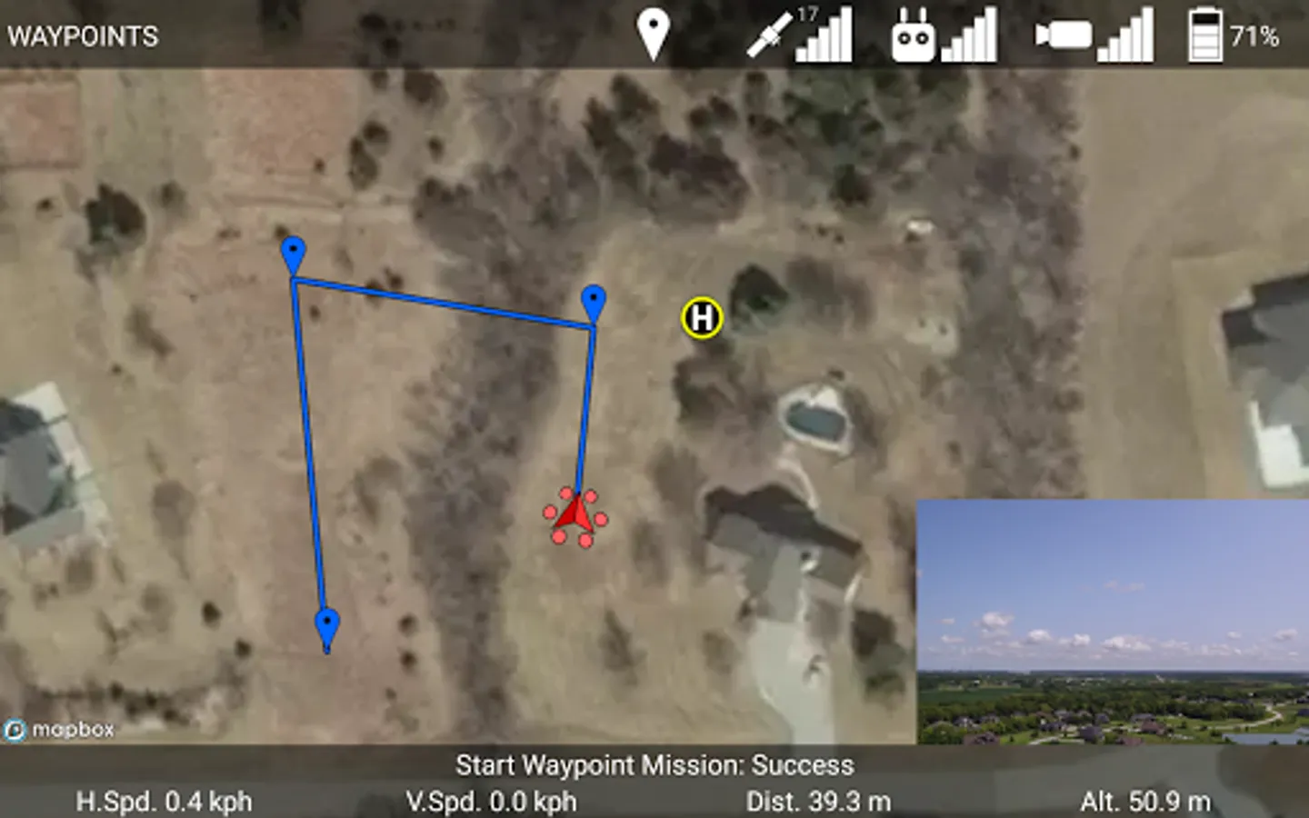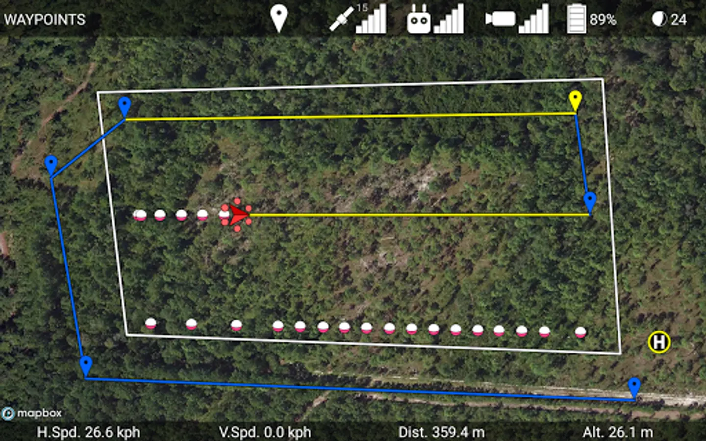 Automatically takeoff, fly along waypoints, drop ignition spheres, and land.