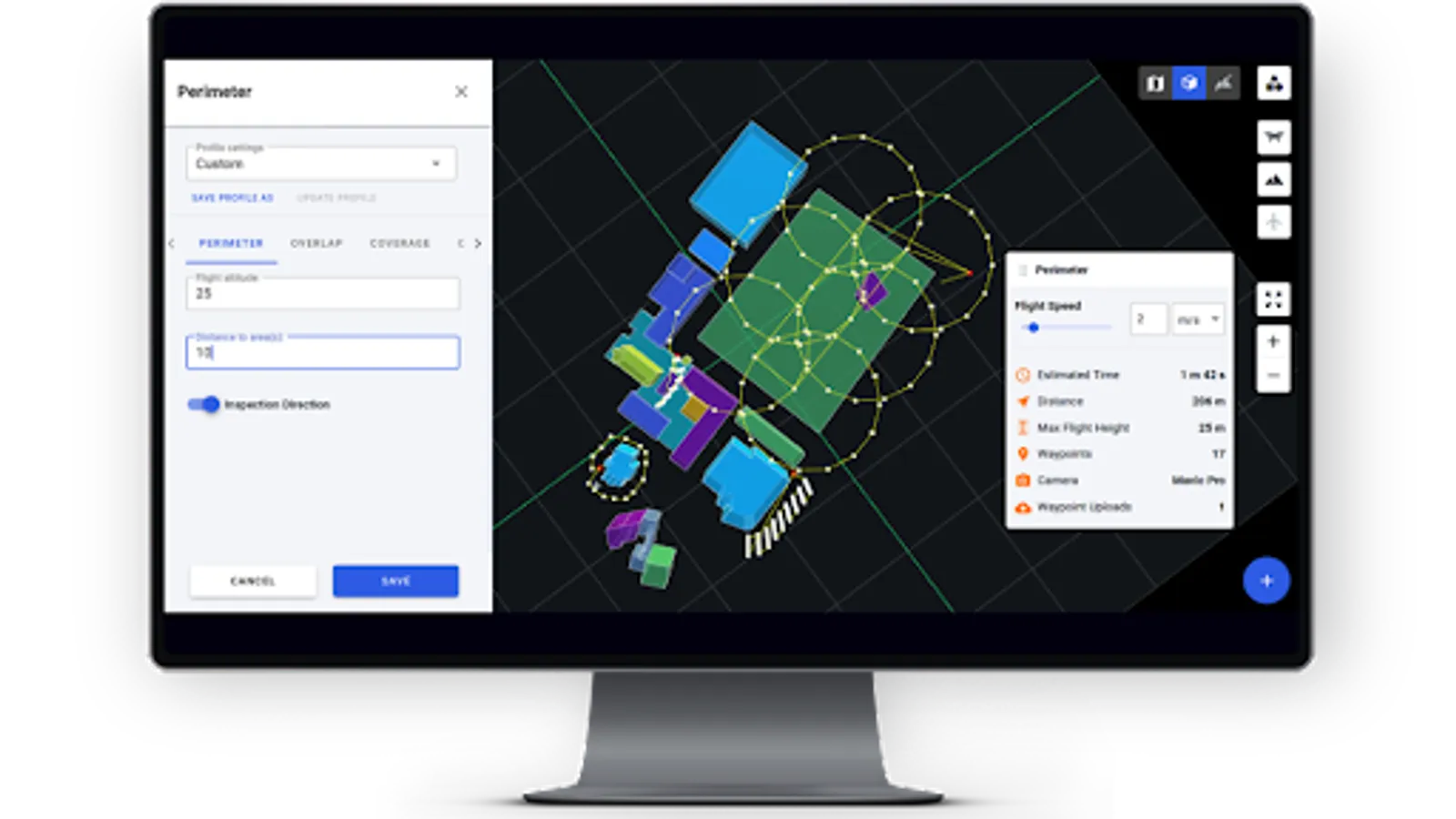 Focus on setting goals instead of outlining flight plans. A unique data-driven planning workflow and 3D environment lets you make use of your existing asset data to increase automation and guarantees quality results. Smooth flights for stunning videos, dramatic reveals, scenic orbits and more- all at your fingertips.