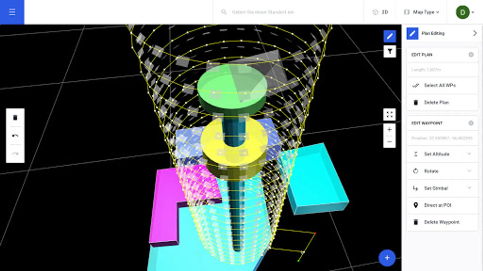 Generated flight plans are algorithmically optimized for accuracy and flight time. For every waypoint the location, gimbal and camera angles are computed optimally for capturing your scene.
