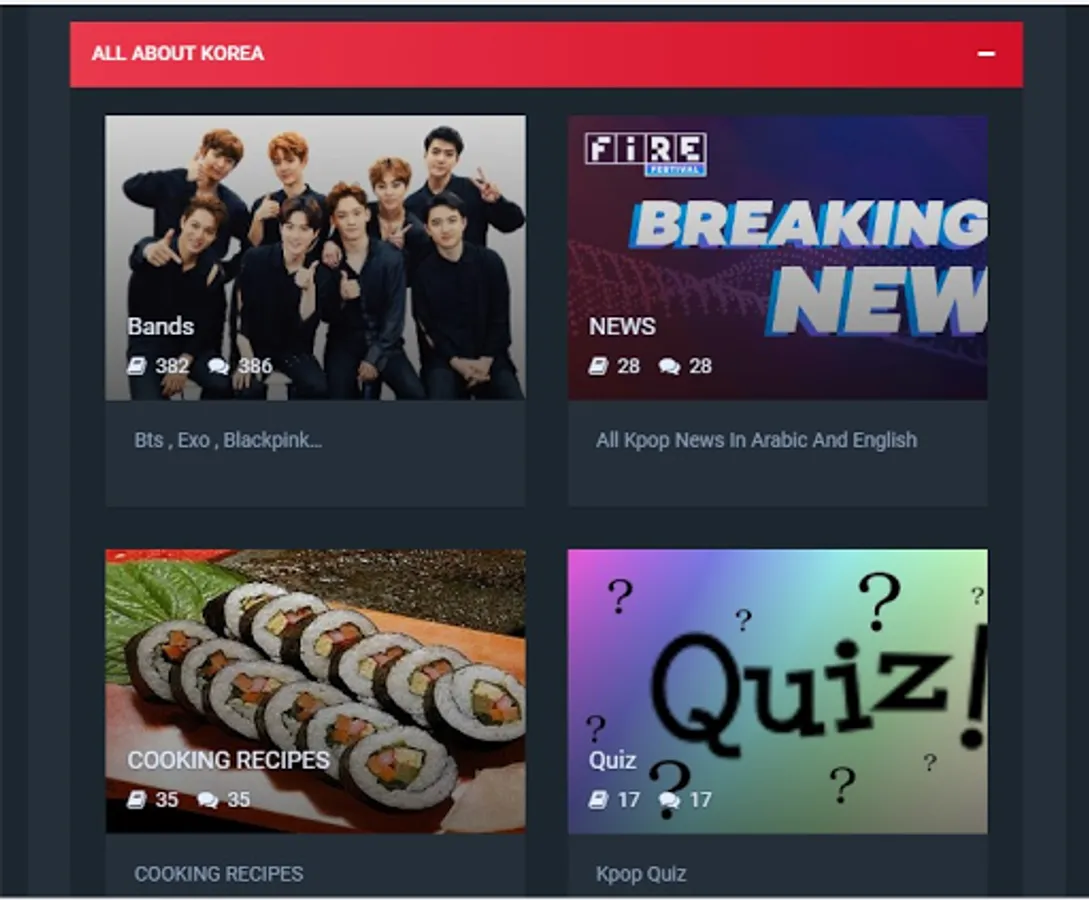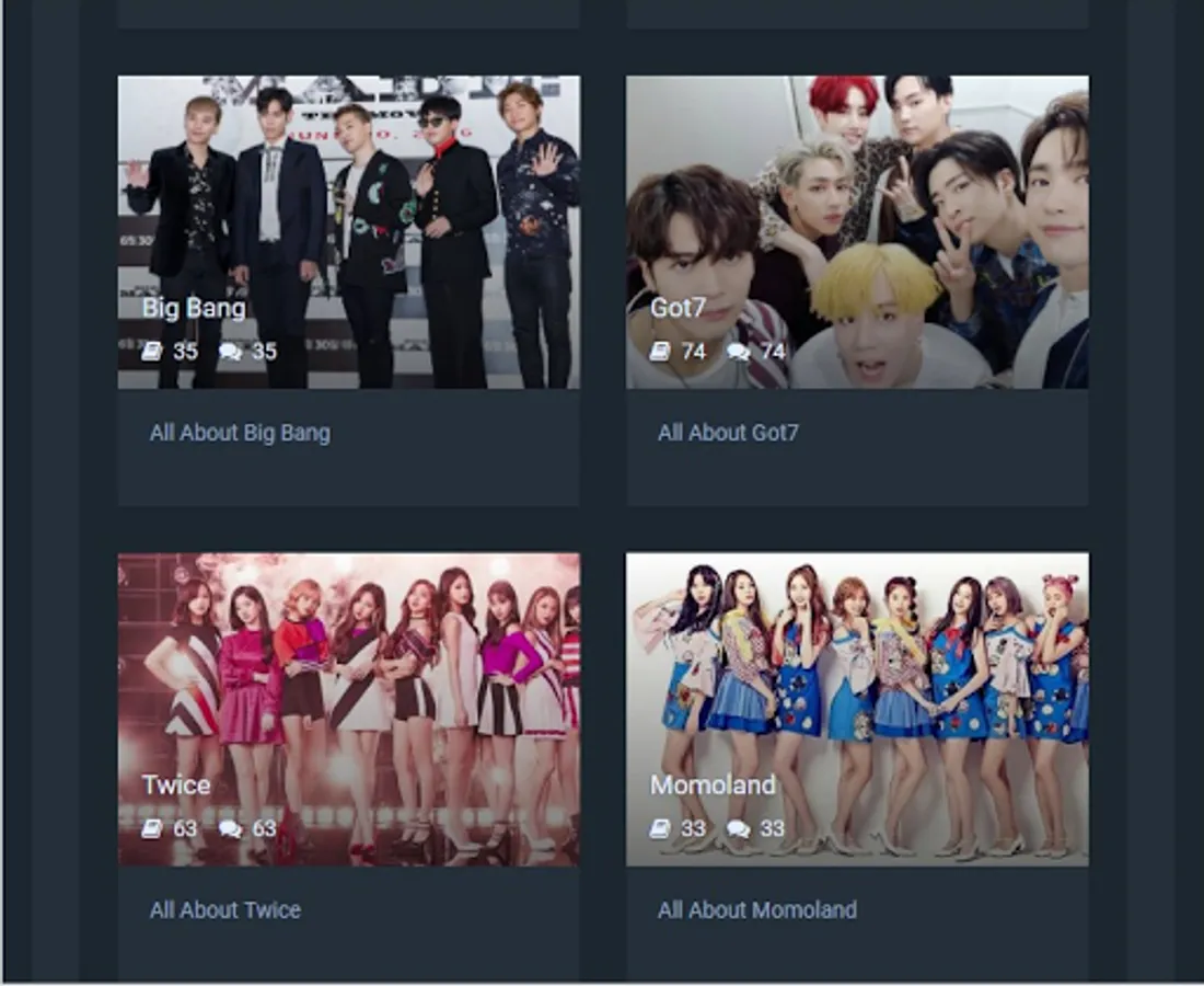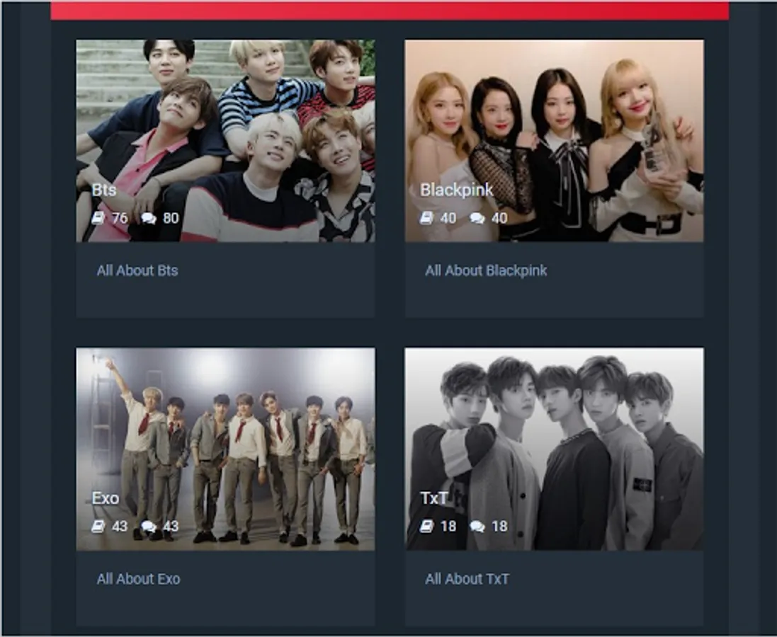 im kpoper app will help you to find all bands songs like bts and blackpink and exo and txt and twice and big bang and momoland and got7... and wallpapers and tutorials dance and cooking recipes and the latest kpop news and play quiz and chat with your friends and much more..... install this app and enjoy . we love you