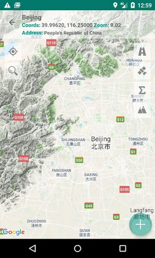 • Different map types: Road Maps, Satellite, Hybrid and Terrain.