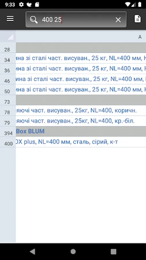 • The ability to display the headers of the table sections for the results found (these must be the cells that join all the columns)