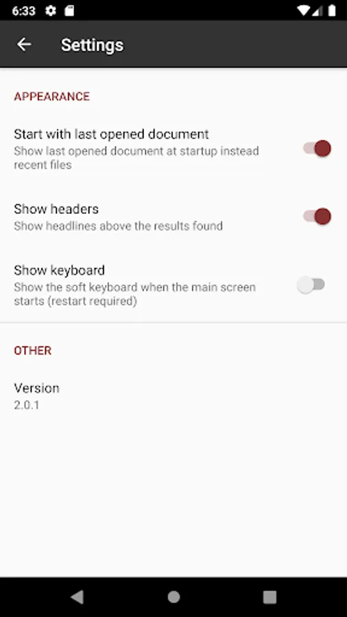 • List of recent files