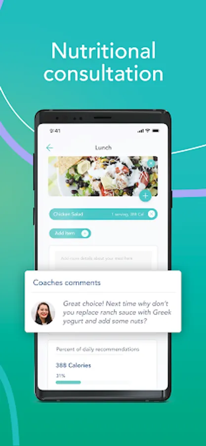 ● Track your meals on-the-go by simply uploading a picture of what you eat