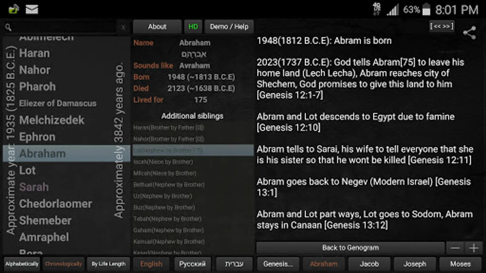 3. Scroll through a list of people mentioned in the Torah (Five Books of Moses)
