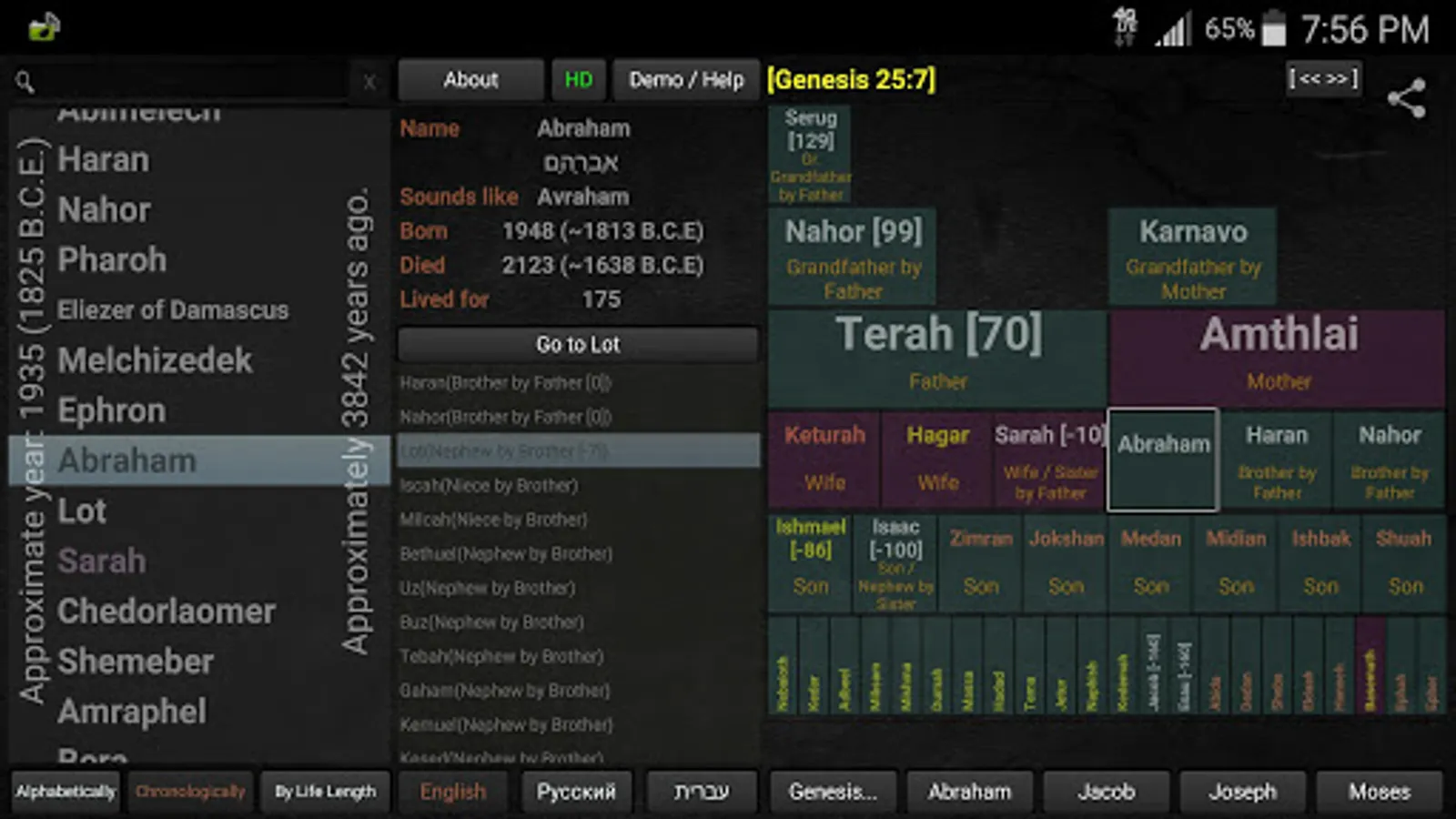 This app provides you with the ability to quickly see the family relations of those characters, whose relations were described in the Torah.