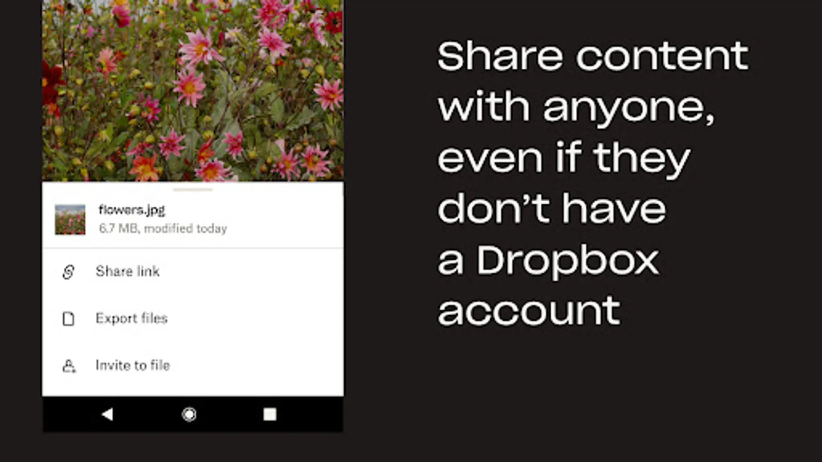• Easily send large files by sharing a link with anyone, even if they don’t have a Dropbox account.