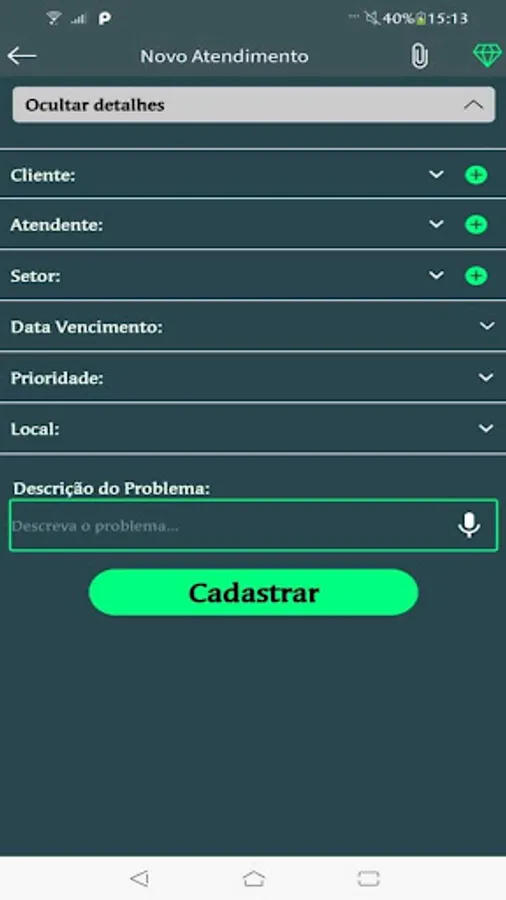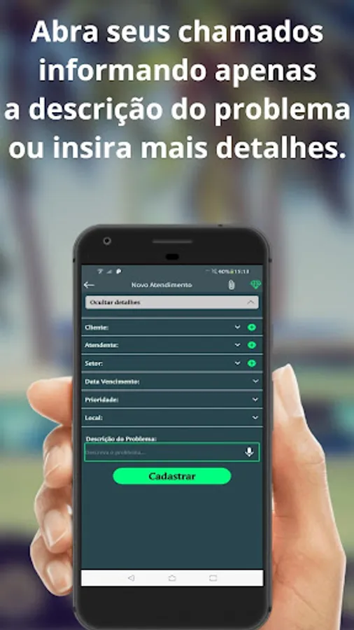- Enter, manage, priority, inform the time worked, enter a due date and close your helpdesk calls.