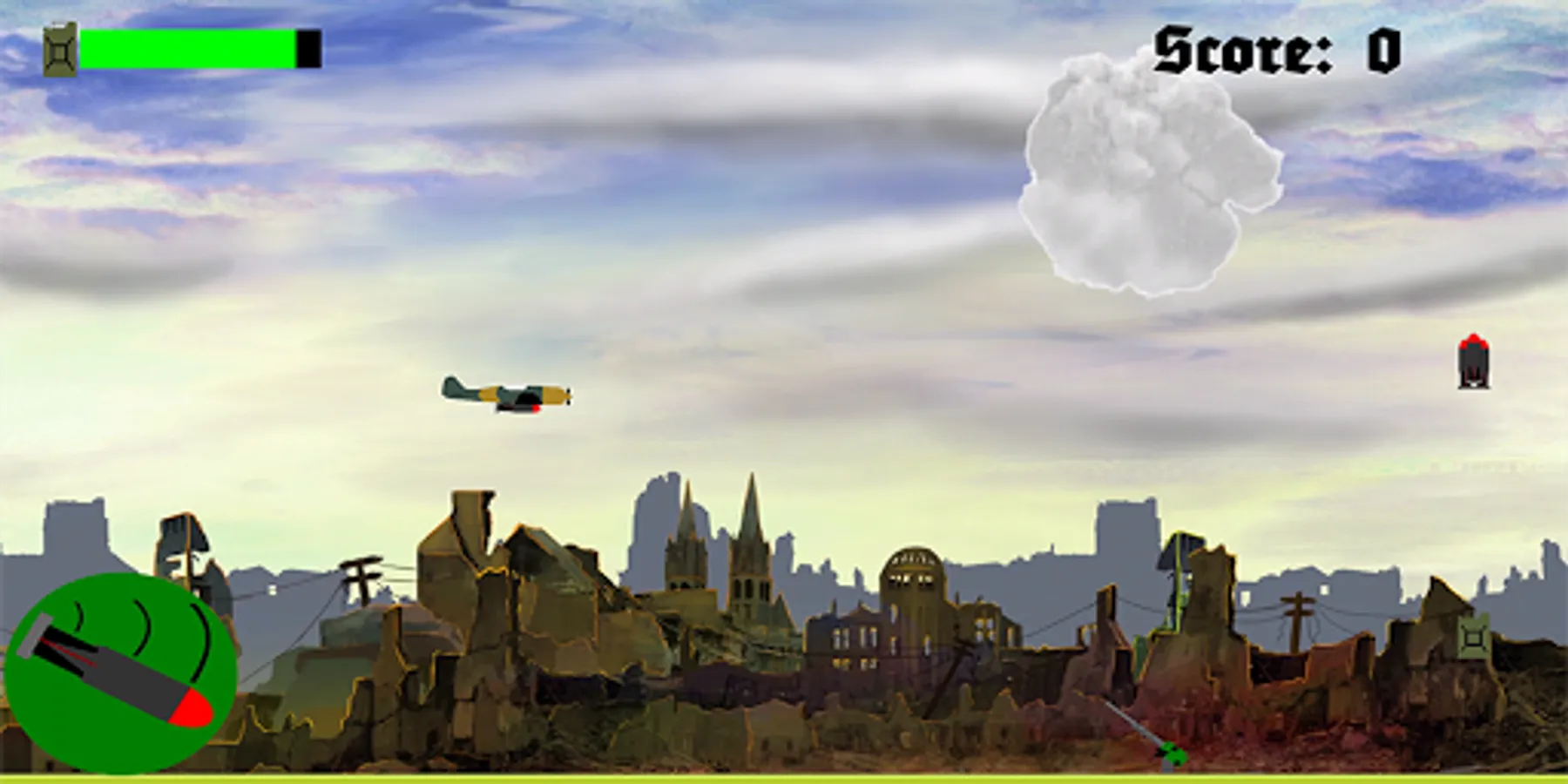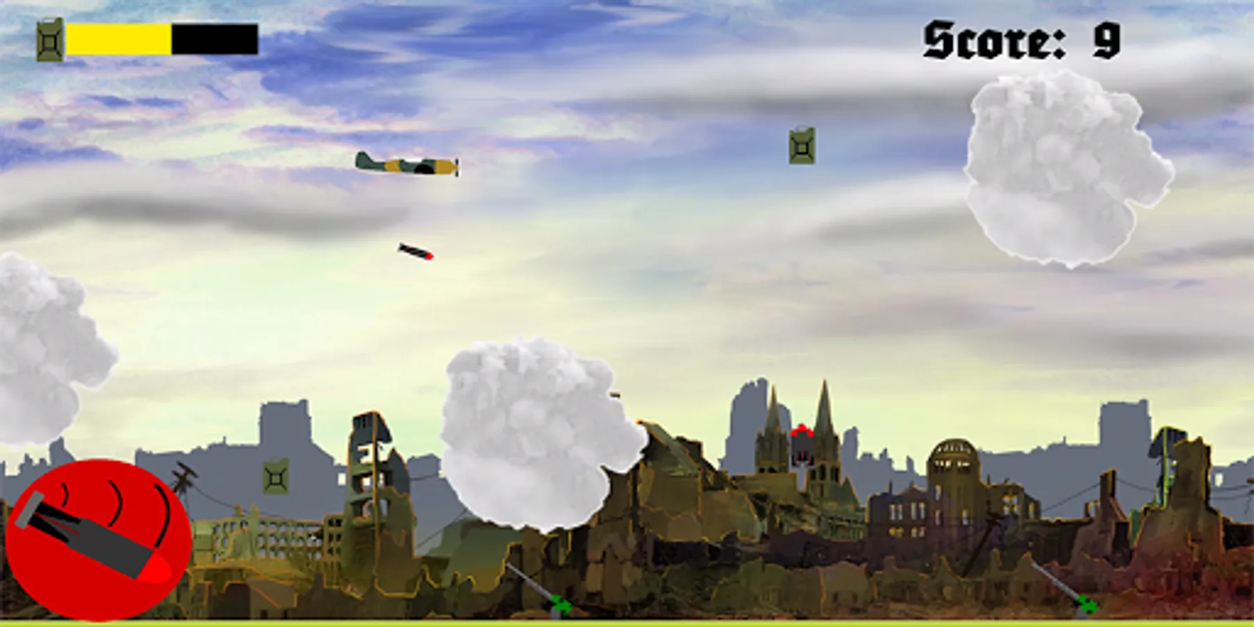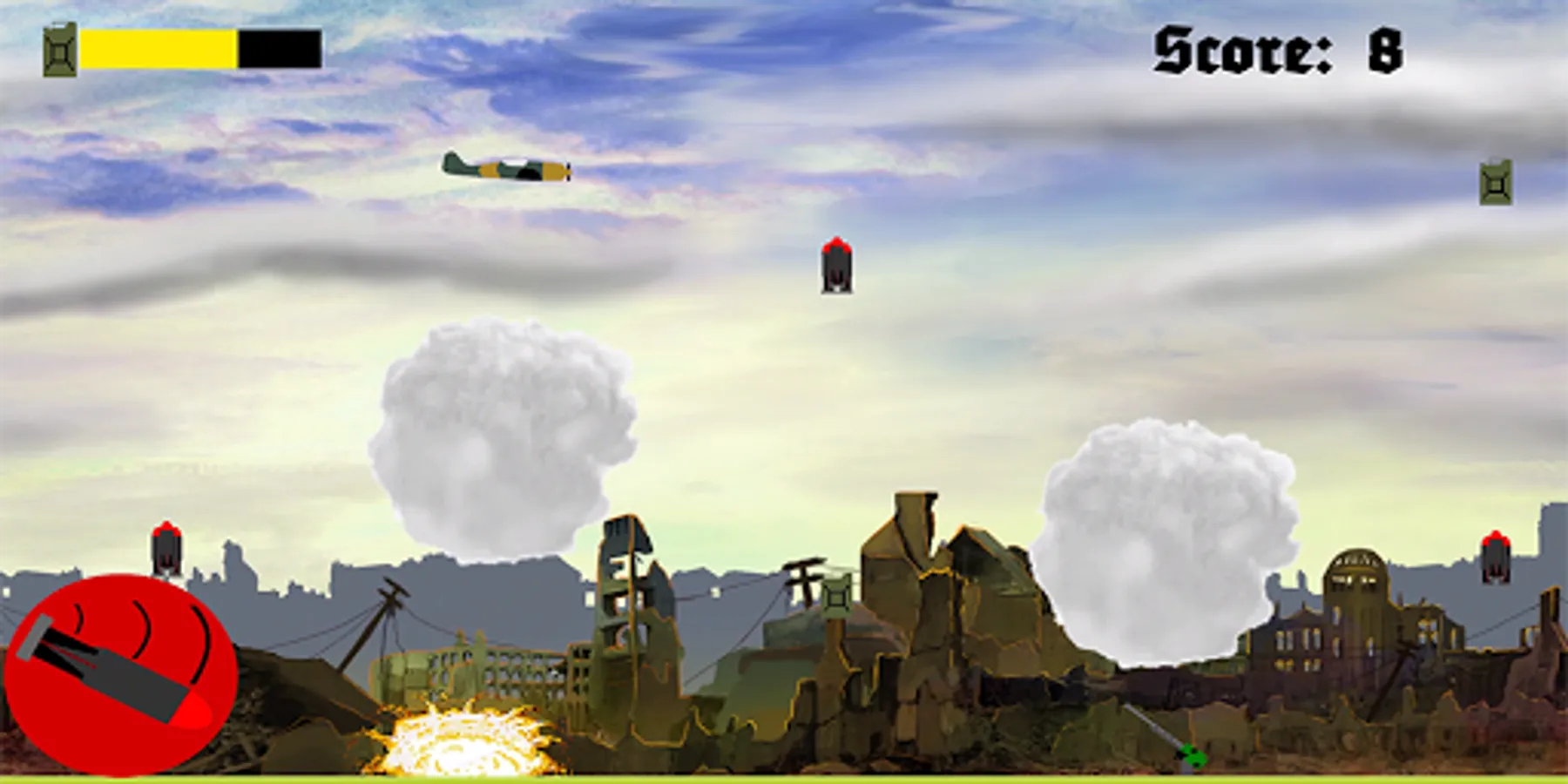 Drop bombs on enemy AA guns to collect extra points.