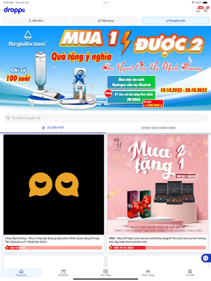 Droppii Biz provides full functions like Droppii's business management system (https://biz.droppii.vn/). The application provides information about business policies, discounts, products and special promotions of Droppii's business ecosystem. It also provides you with customer information and order status for easy tracking. In addition, the Droppii Biz application will also notify you of the time when the customer has purchased and used the product so that you can know when to continue to consult the next product or new products. for customers. Easily place orders and run your business from anywhere with Droppii Biz.