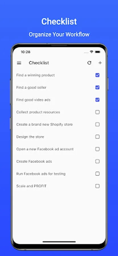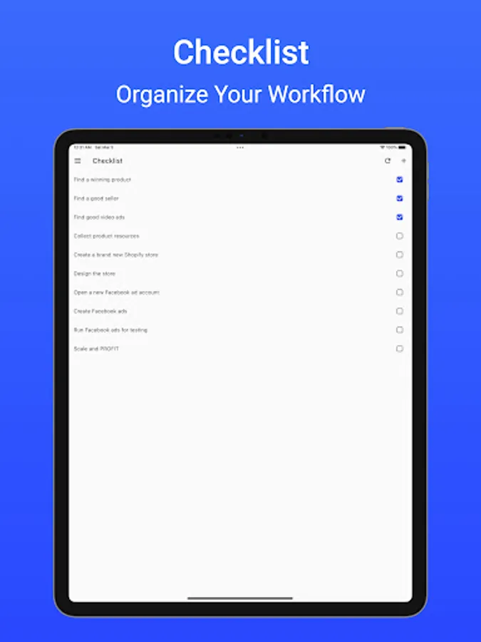 Having a good workflow keeps you being productive and effective. Dropshipping+ gives you a handful checklist tool to organize your workflow. It comes with a default checklist dropshippers have to go through for your dropshipping journey.