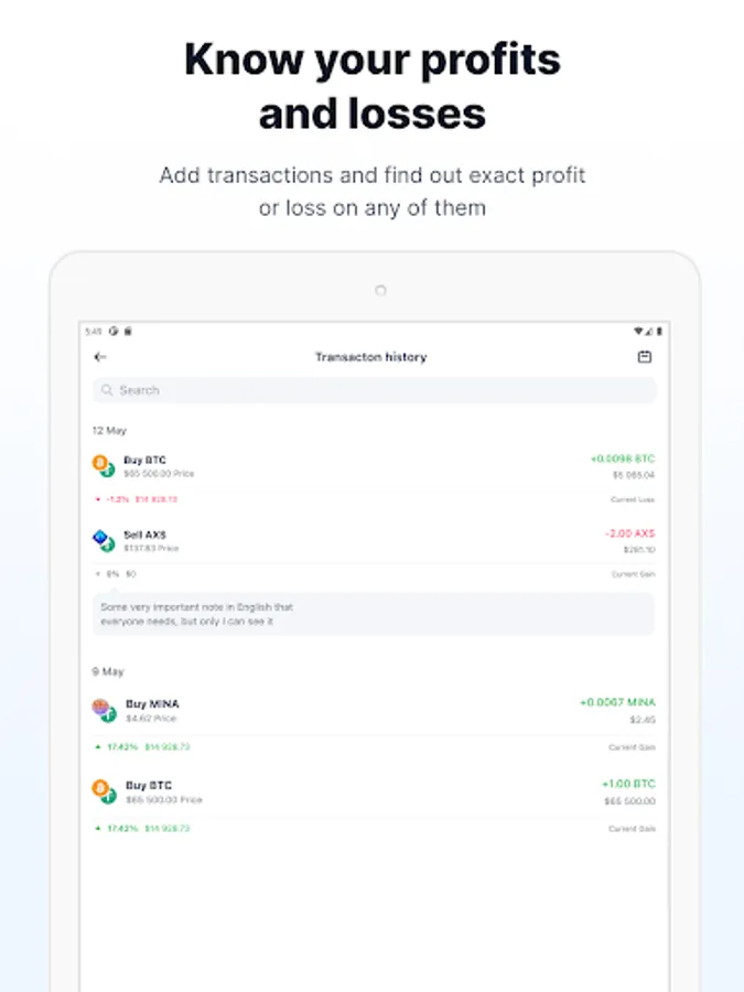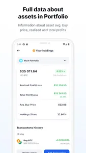 Through our app you can also track and manage your crypto portfolio anytime anywhere. Just select the cryptocurrency you want to add to your list, type in the price, quantity, and you`re ready to go. Add as many crypto`s you want, including EOS, Bitcoin Cash, Litecoin, Doge Coin, Tether, Cardano or Avalanche.This way you`ll always be on track with your investing performance. It is a useful feature for day-traders, long or short-term investors, as well as crypto-spectators and newcomers who wish to create a test portfolio and see how they do.