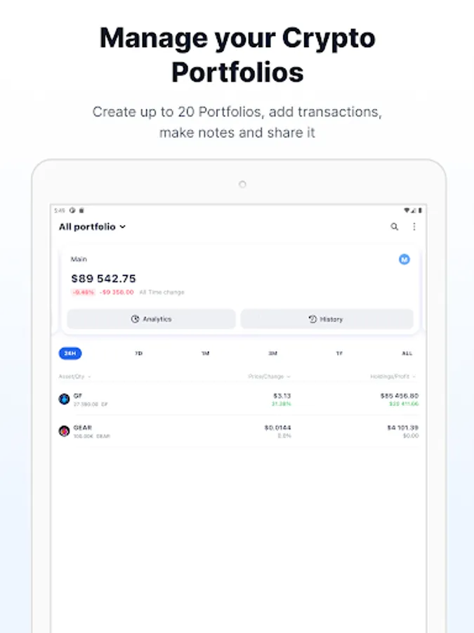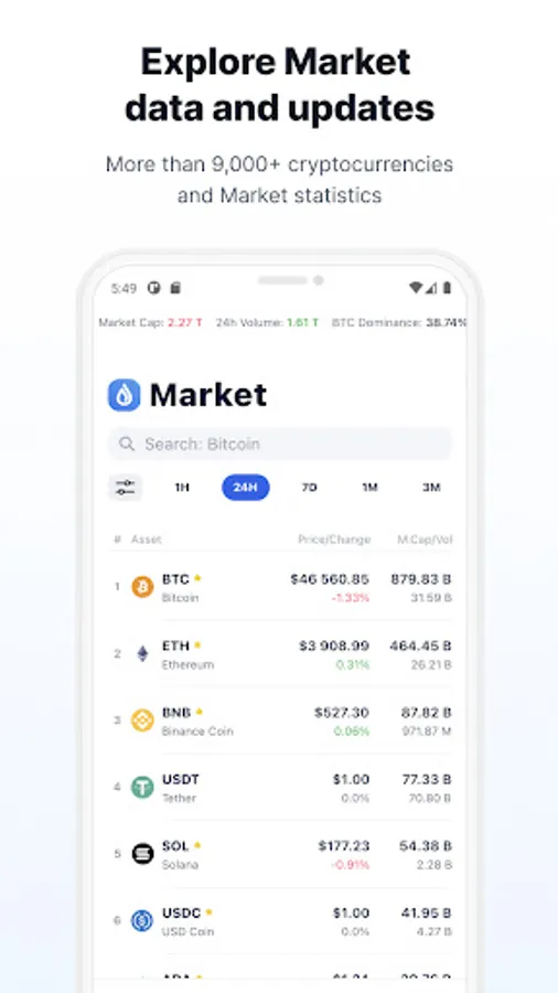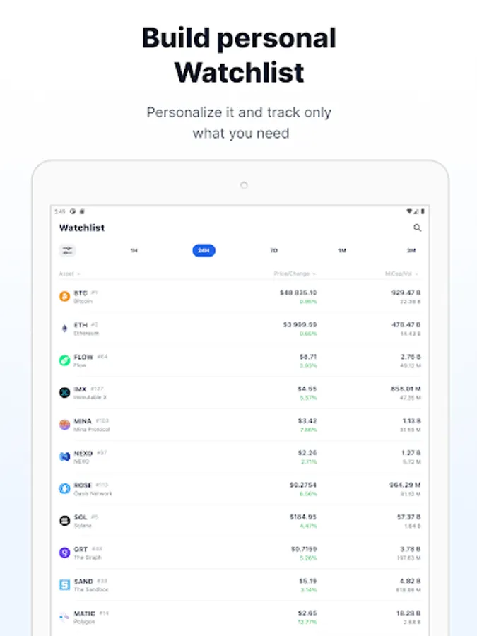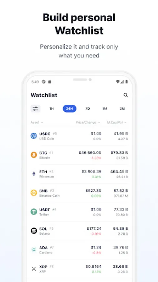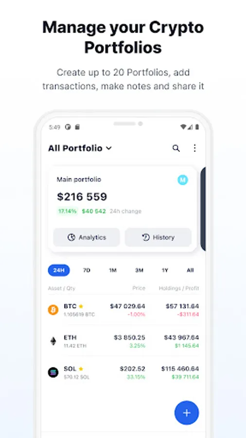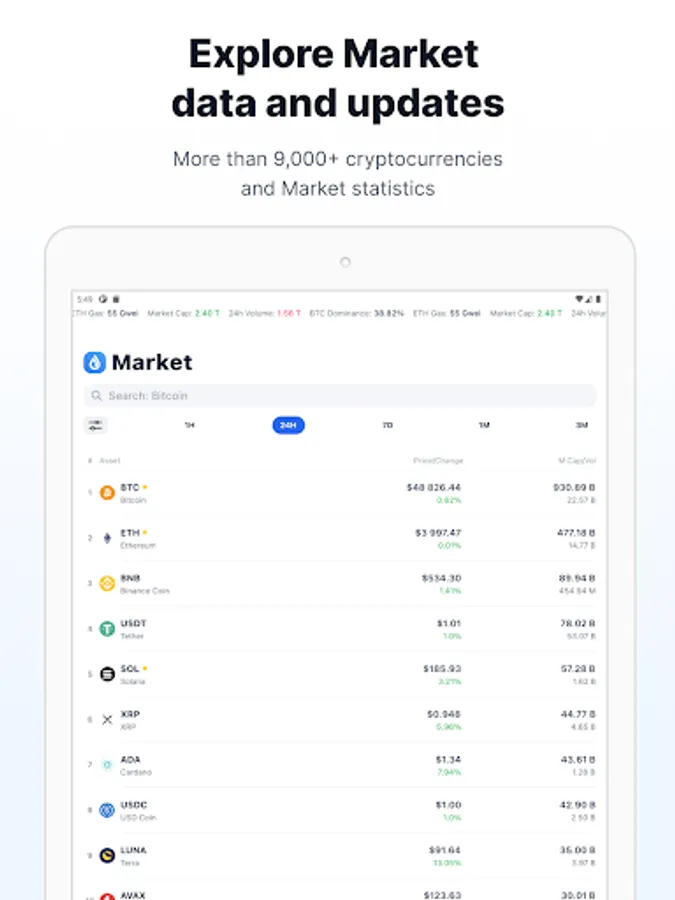 -Track and follow any coin, including the most popular ones such as Bitcoin, Ethereum, Solana, Polkadot or FLOW. We`ve listed +9,000 coins;