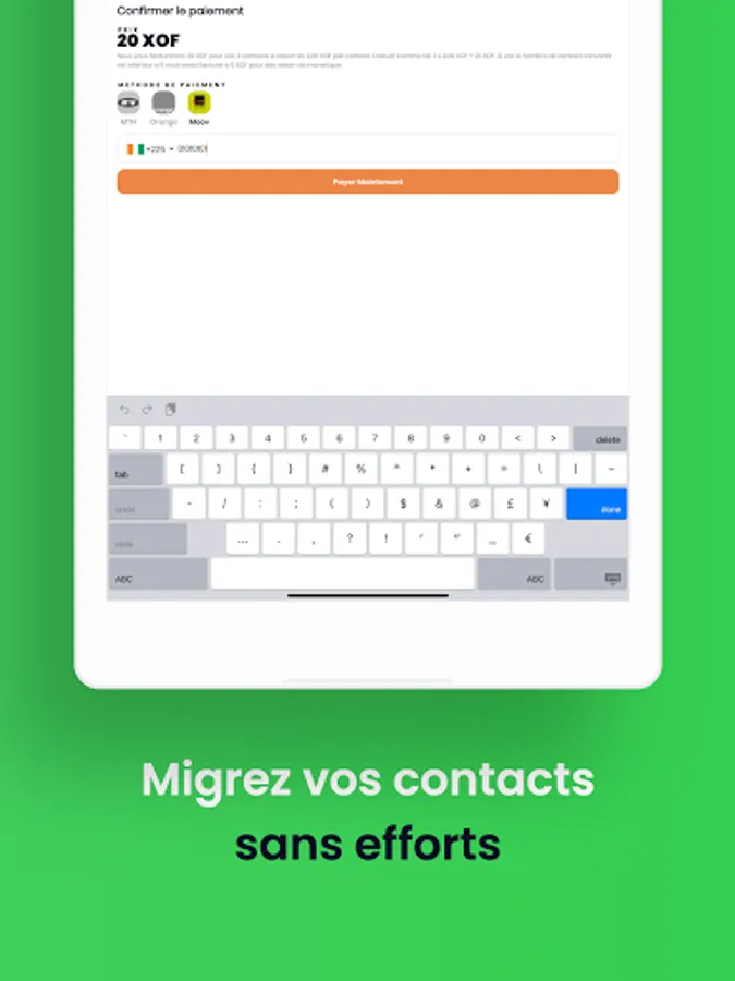 The mobile application that allows you to earn money by migrating your Ivorian contacts from 8 to 10 digits in a few seconds.