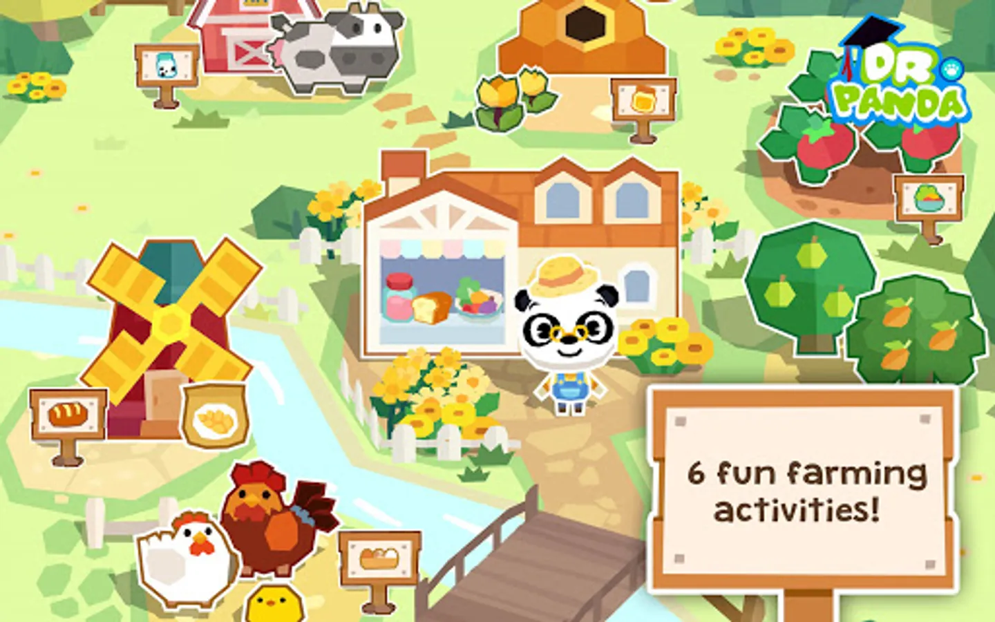 Have you ever wanted to run your very own farm? Now you can with Dr. Panda! Escape to the countryside and learn how to become a farmer! Make bread from wheat, feed the chickens, take care of the cows, harvest vegetables, and much more!